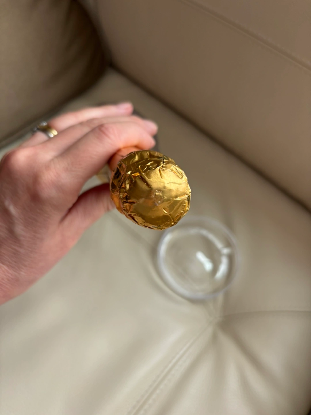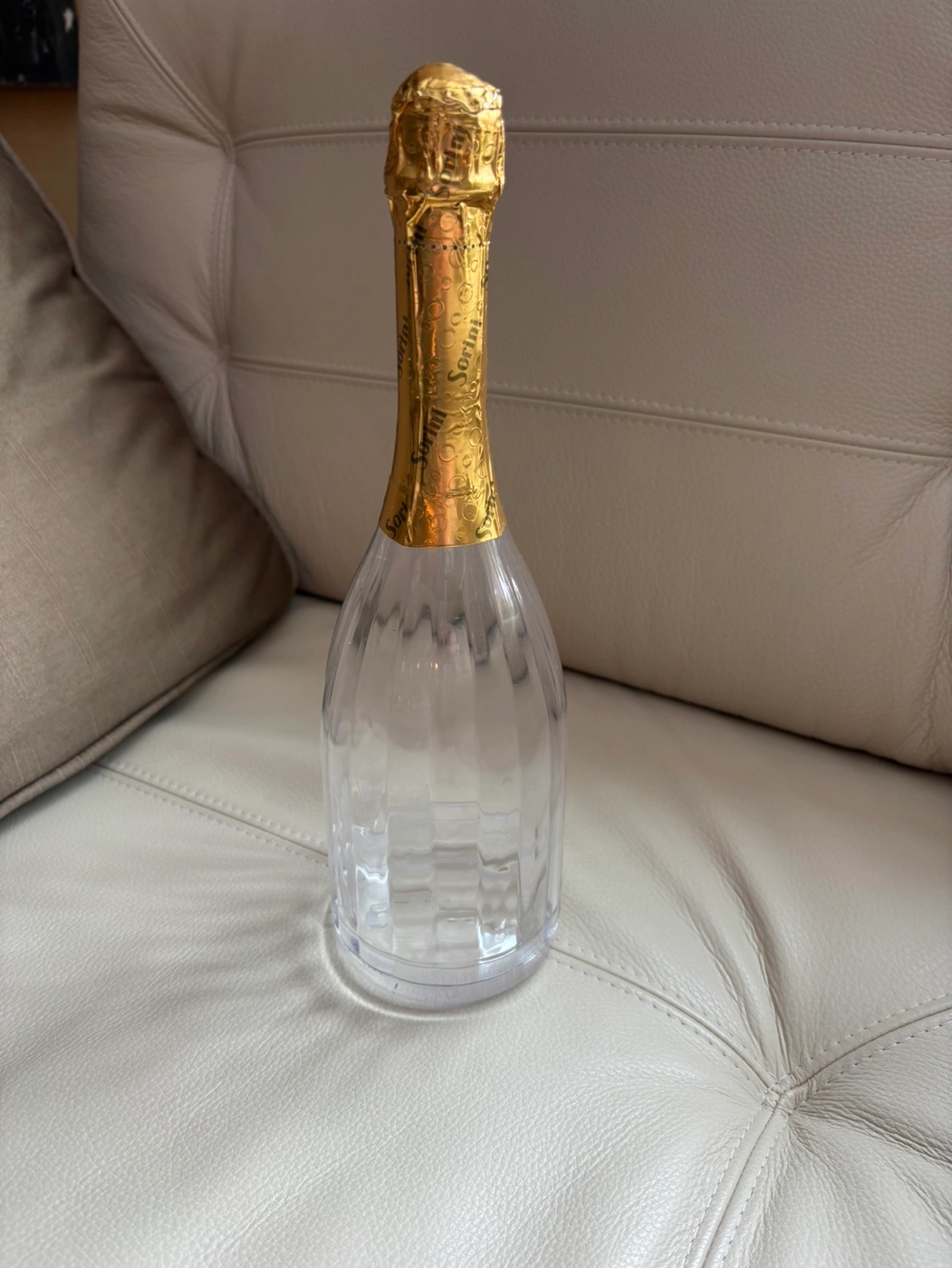 Clear empty plastic bottle and base with gold foil label. Perfect for displaying or repurposing with chocolates, candy or other items. In pristine condition. From a smoke and pet free home. Pickup in the St Lawrence market area of downtown Toronto. Cash only.