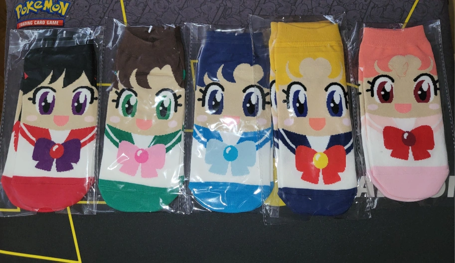 Sailor Moon Socks x5 Sizes in between 7-9 75% cotton, 17% nylon, 6% polyester, 2% spandex (Hand Wash Only) Sailor Moon Sailor Chibi Chibi Sailor Mercury Sailor Mars Sailor Jupiter