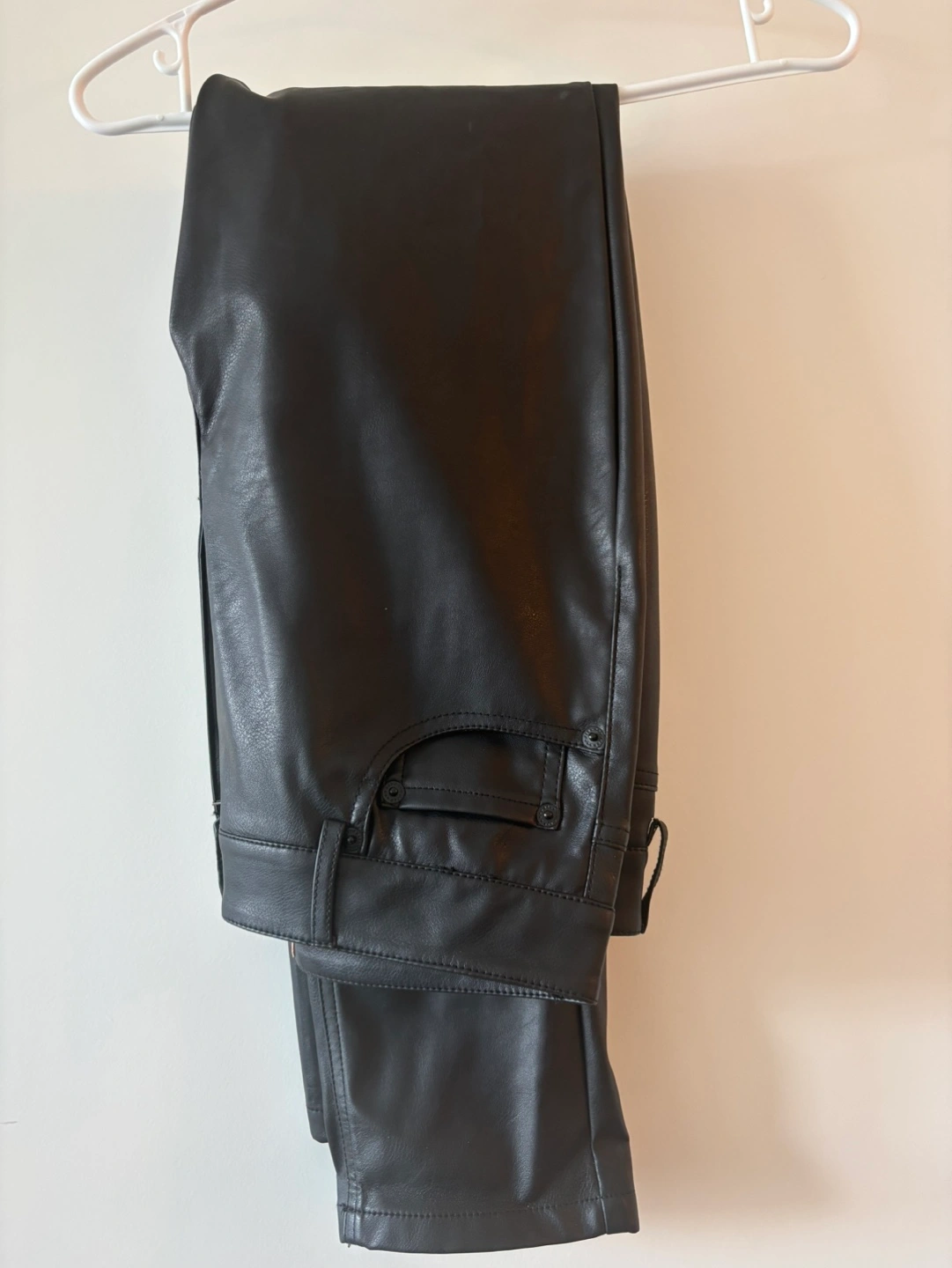 Black faux leather pants. Straight leg. High-waisted. Excellent condition. Size Medium (I’m a US 6 and they fit perfectly) Pickup at Queen/ Spadina