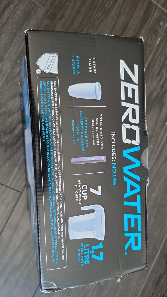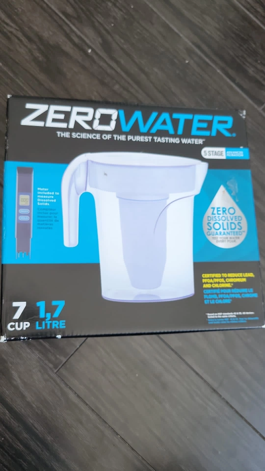 New in box. Five-stage filter. Includes a 1.7 litre pitcher and TDS meter. Reduces dissolved solids.
