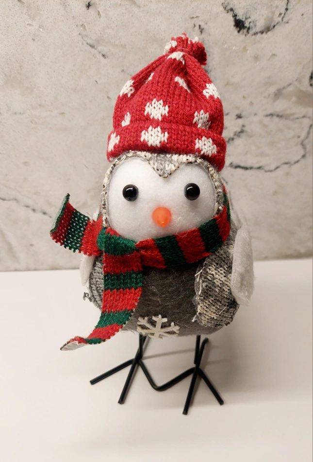 Cute little bird figurine. Grey body with wire legs. Red and white knit hat. Green and red scarf. Home décor. *If the post is Active, it’s Available* --> See DT location below for meet-up, walking distance from Rogers centre.
