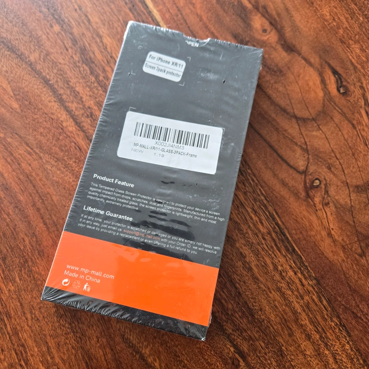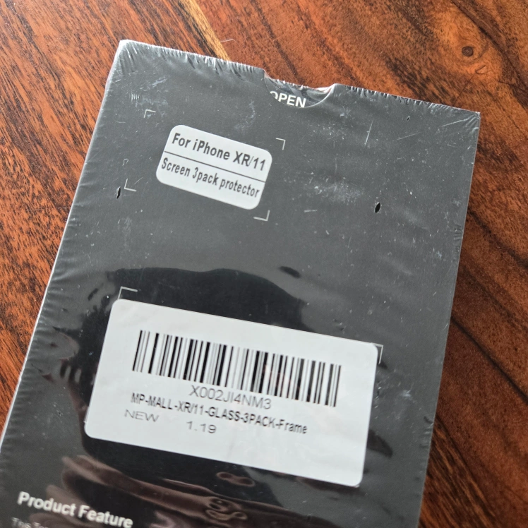 New, unopened 3-pack of MP-Mall 9H tempered glass screen protectors. Designed for iPhone XR. Features anti-fingerprint, scratch-resistant, and shatterproof qualities.