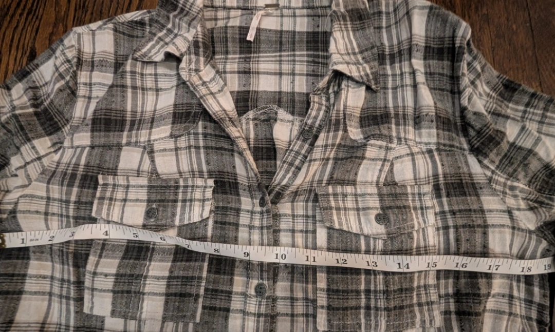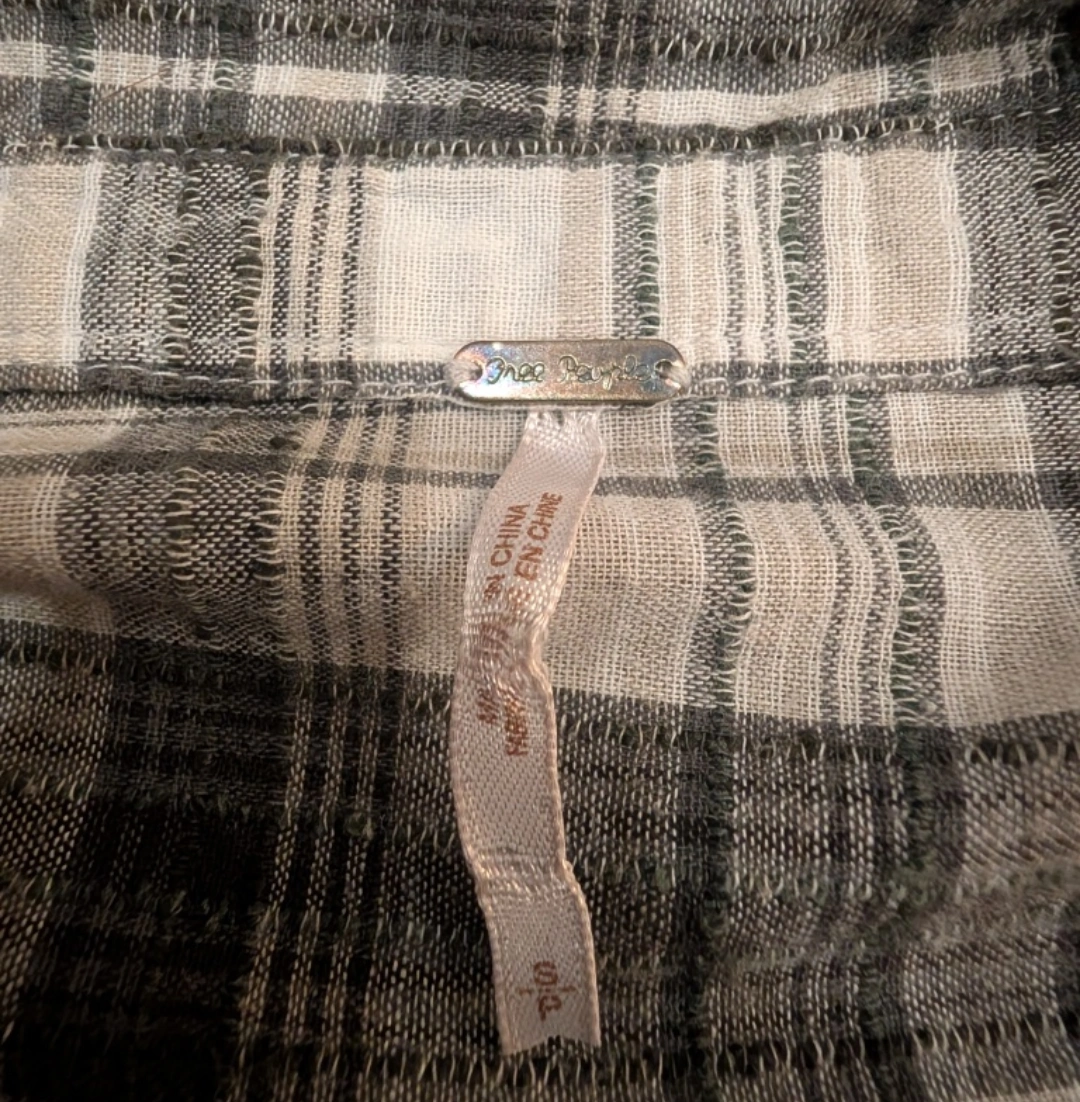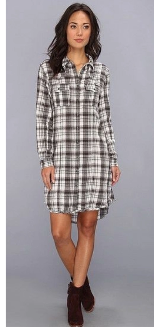 Brand: Free People Size: Small Condition: Like new Location: St. Clair West and Spadina or St Clair West station Fastest pickup preferred. Cash only. Bundle with my other items for discounts. Black, white, and grey plaid button-up dress. The material is slightly textured. Please see approximate measurements in pictures. Note that the bottom hem of the dress is "raw" and this is a deliberate element of the design.Long sleeve shirt dress. Button front. Two chest pockets. Relaxed fit. Size small.