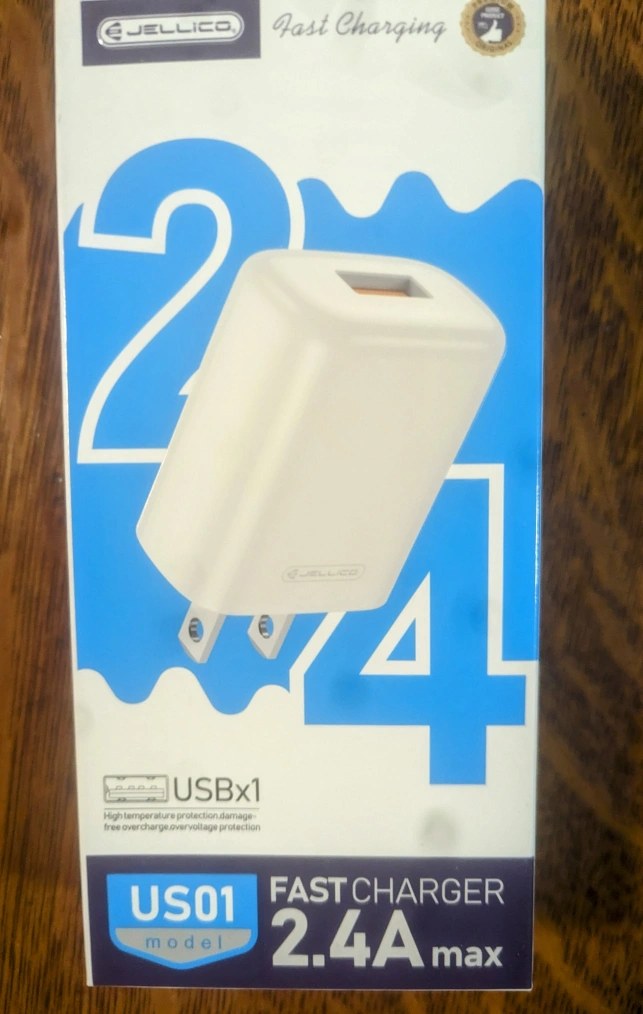 New Jellco fast charger in white. 2.4 amp max output. USB 1 port. Multiple protection features. Model US01. Fast charging Charging is safe Multi - Protector Comes with original new box. I have one my self and it is π.