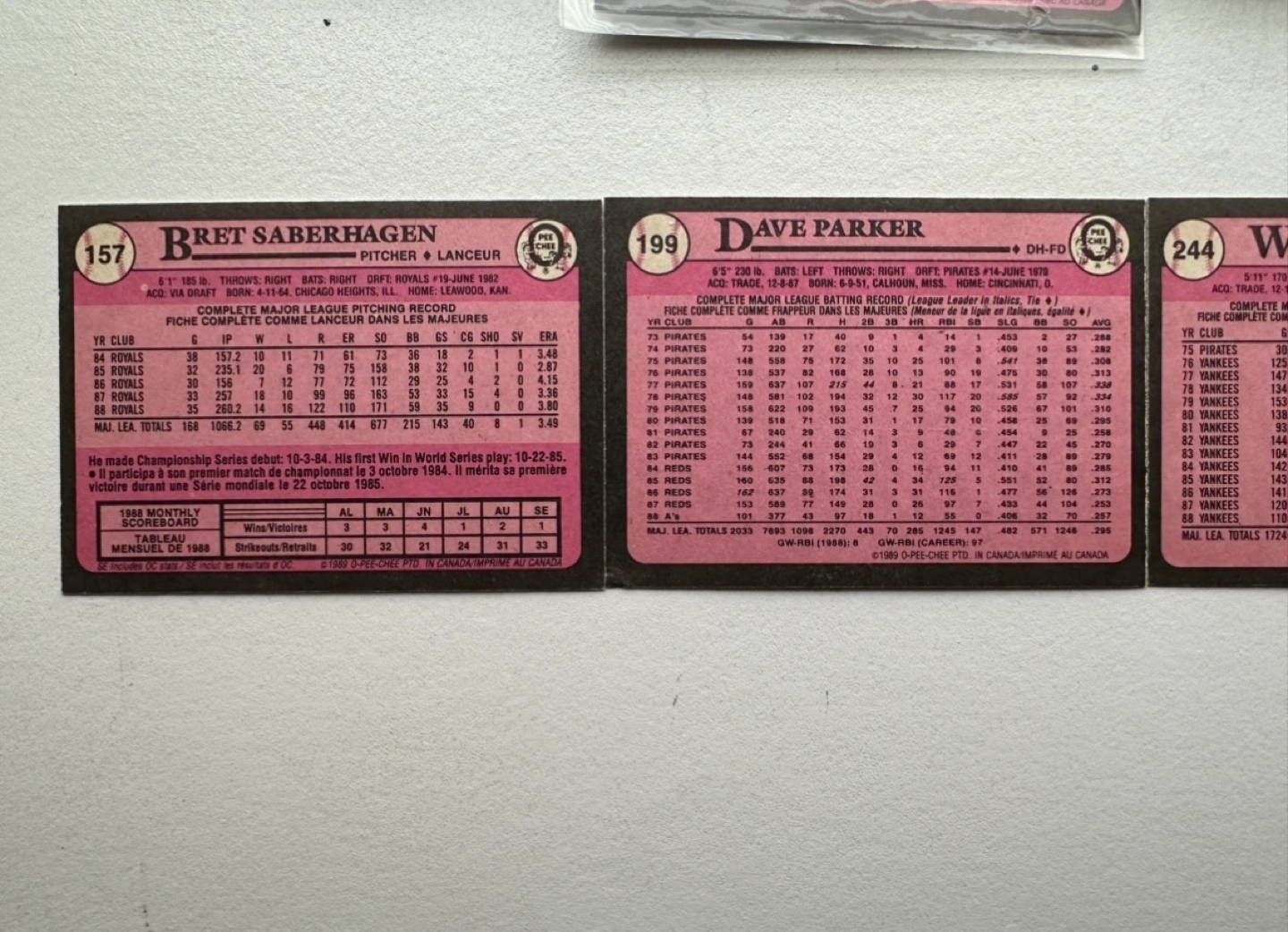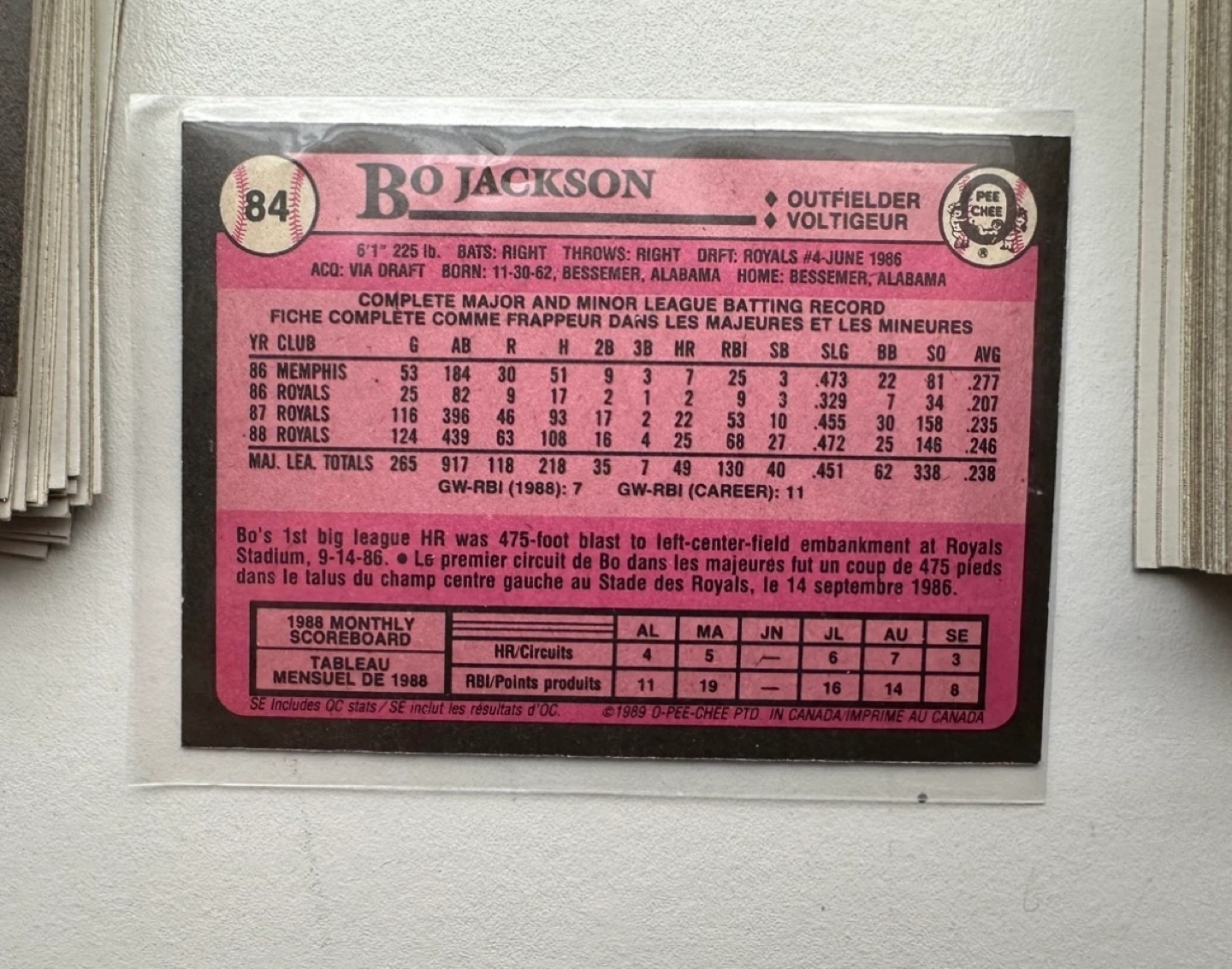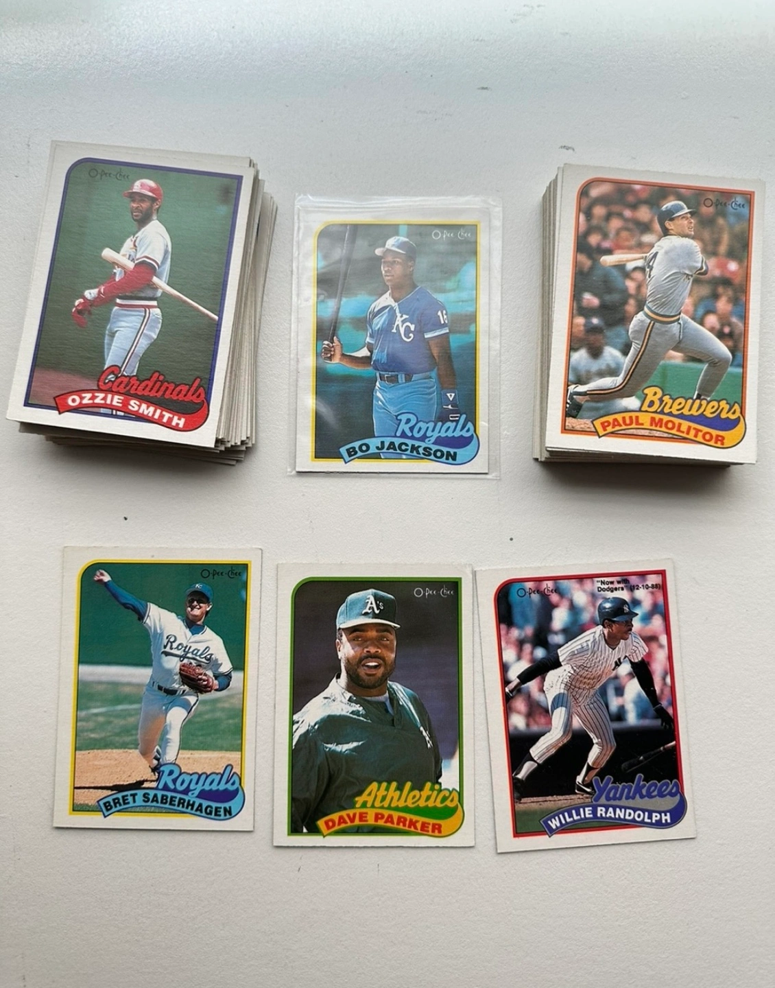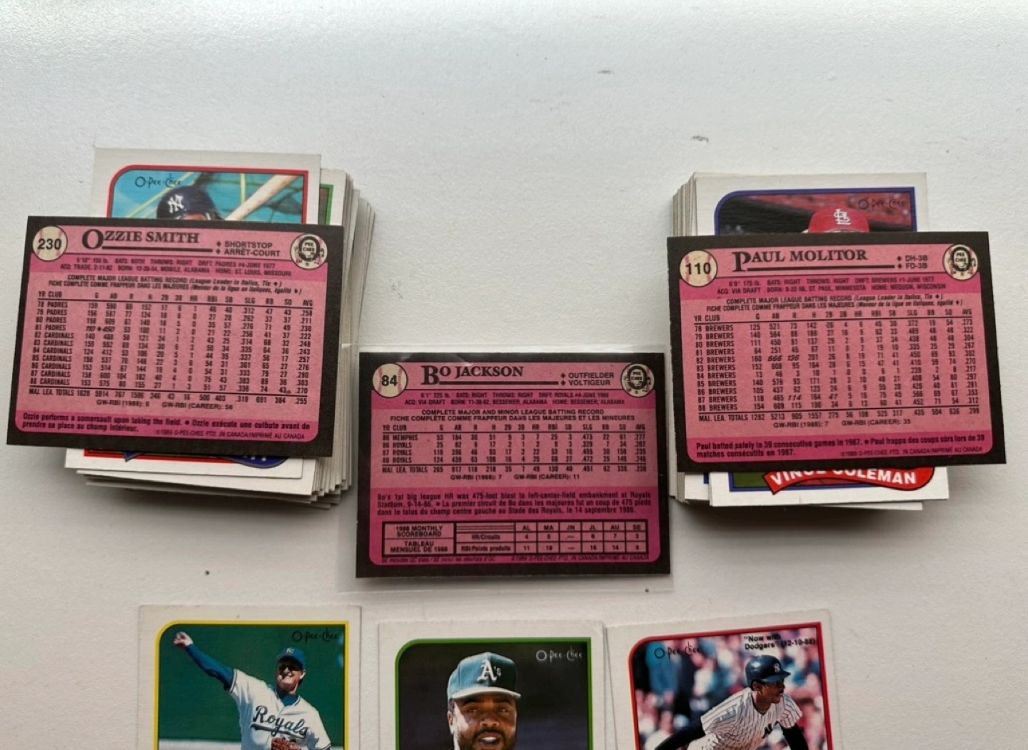 Collection of 1989 O-Pee-Chee baseball cards. Features various players including Bo Jackson, Ozzie Smith, and more. More than 50-60 cards.