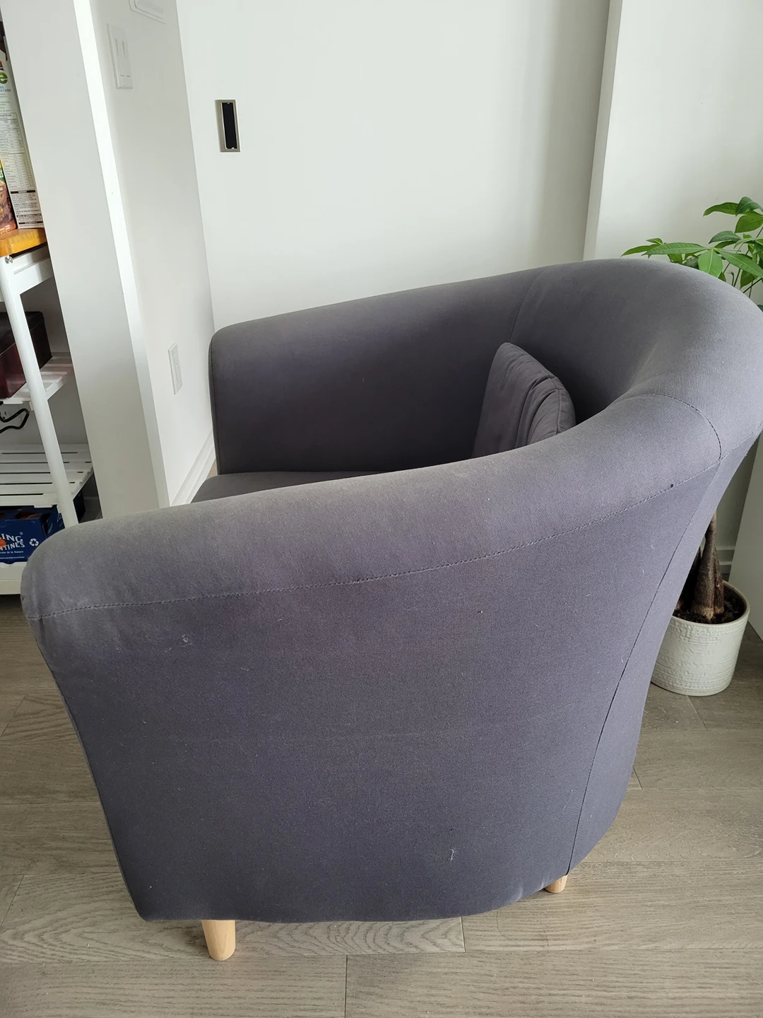 $85 for a barely used Ikea Tullsta accent armchair, dark gray. Bit of dust in the washable cover. For pickup only, Jan 6 onwards between 7-9pm. E-transfer payment before address details. Thank you.