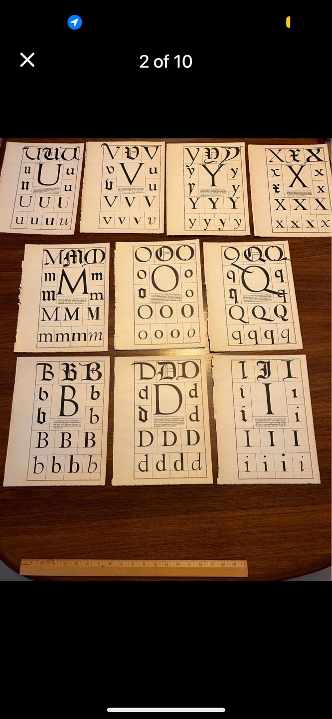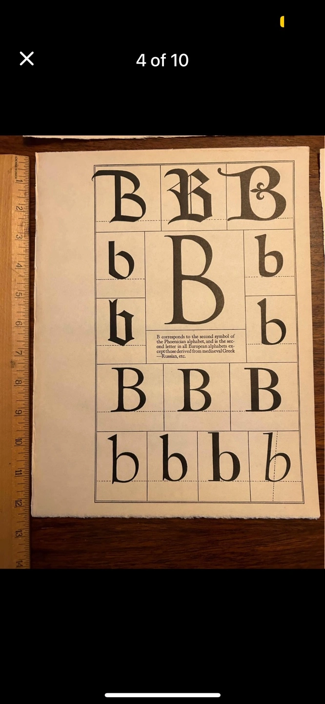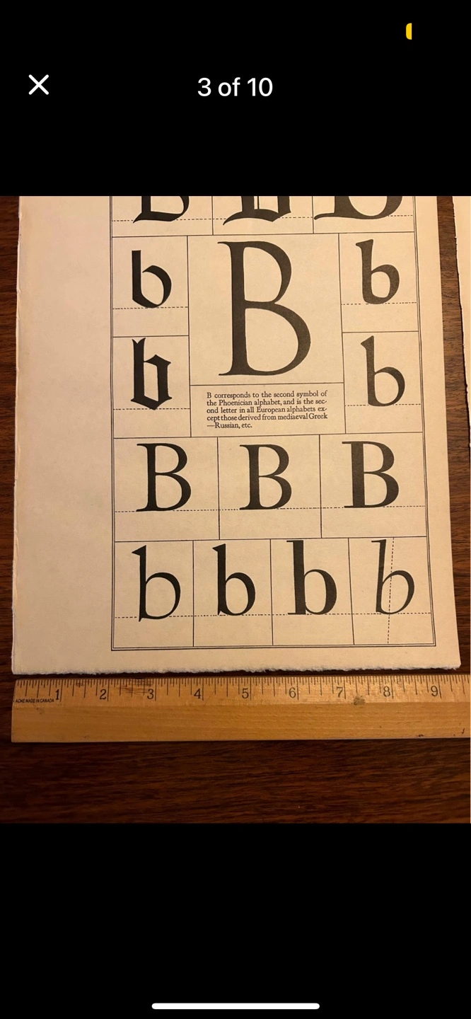 Initial calligraphy typography B X O Y M D I Q U V 9 x 12 inch old antique Donlands O'Connor M4J3M3 9.00 each Old pages from a typography letter calligraphy book Size 9 x 12 inch approximately Elmsdale road m4j 3m3 Donlands O'Connor East York