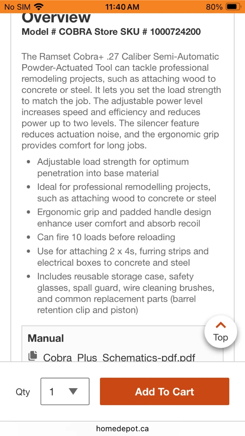 This is a brand new never been used at all Ramset Cobra + semi automatic powder actuated concrete nailer. Case and wire cleaning brush are not included, just the nailer. Uses a wide range of fasteners and concrete nails as well as powder actuated charges which are in .22 shells to fasten whatever you need to concrete, aggregate, cinder block and many other applications. Perfect tool for basement developments to fasten your walls to the concrete floor. You can also fasten to metal and steel. This is almost $440 with tax in stores but only asking $180 firm