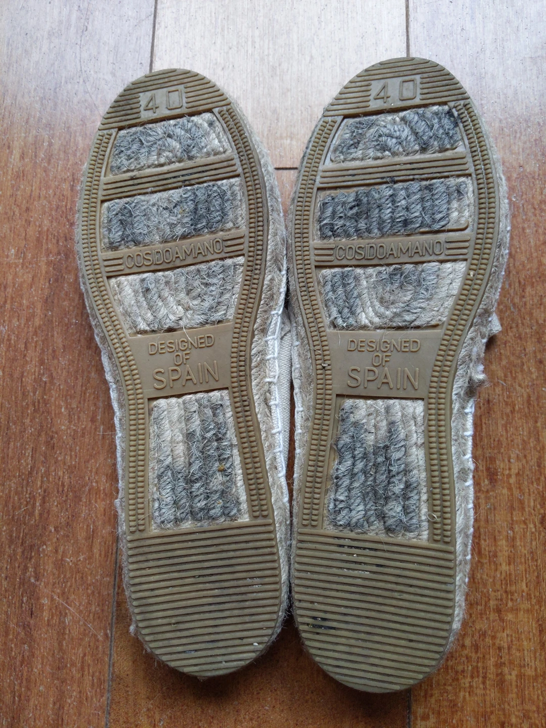 no need for these shoes, even though they're comfy and have a few similar pairs already cosidoamano canvas shoes size 40 (fits woman size 8-9) made in Spain beige eco friendly worn once