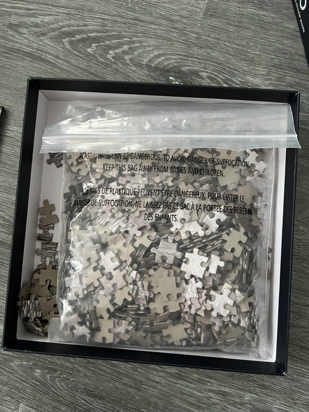 1000 piece puzzle of the moon. The overall shape of the puzzle is a circle. Began assembling it but then put it away bc I didn’t have a lot of space. Details on box in photos.