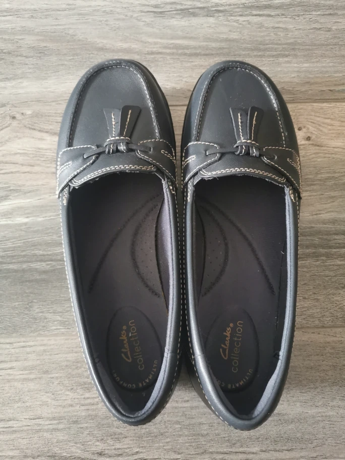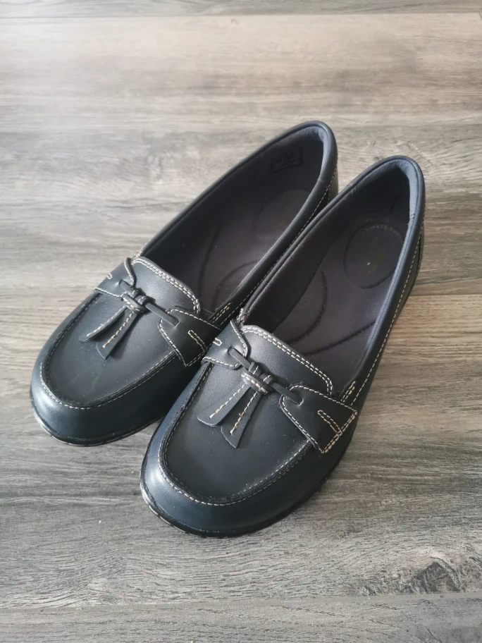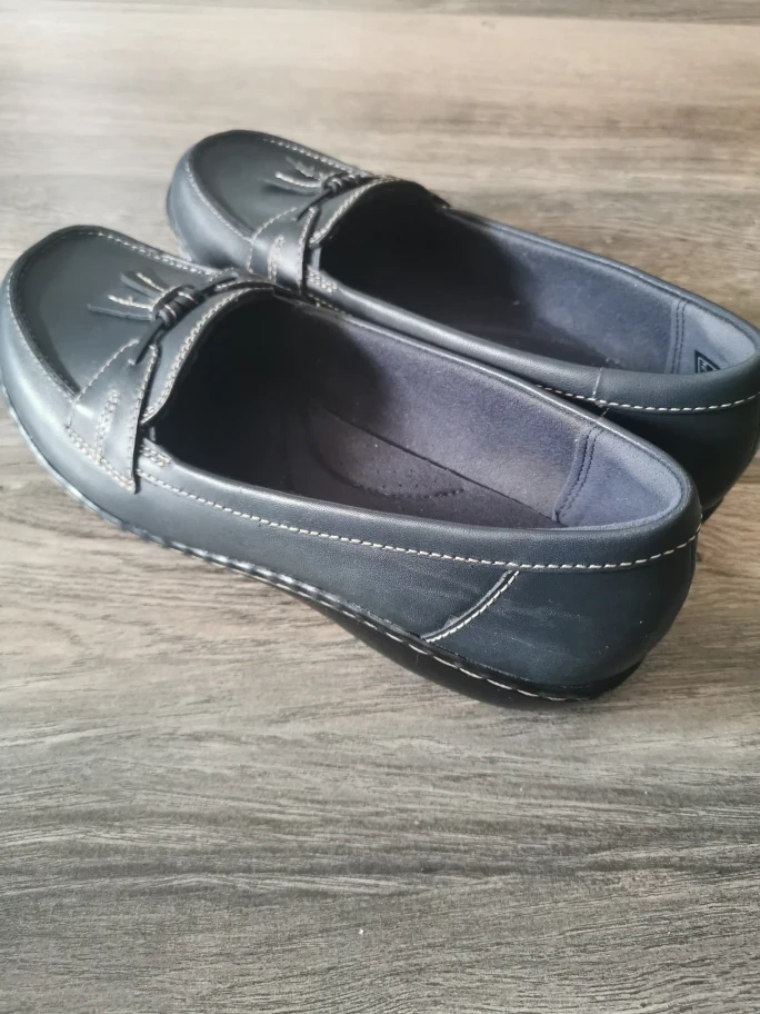 Pair of navy blue leather loafers. Tassel detail. Excellent condition. Comfortable. There are light scrachs on Left heels NO pet, smoke home