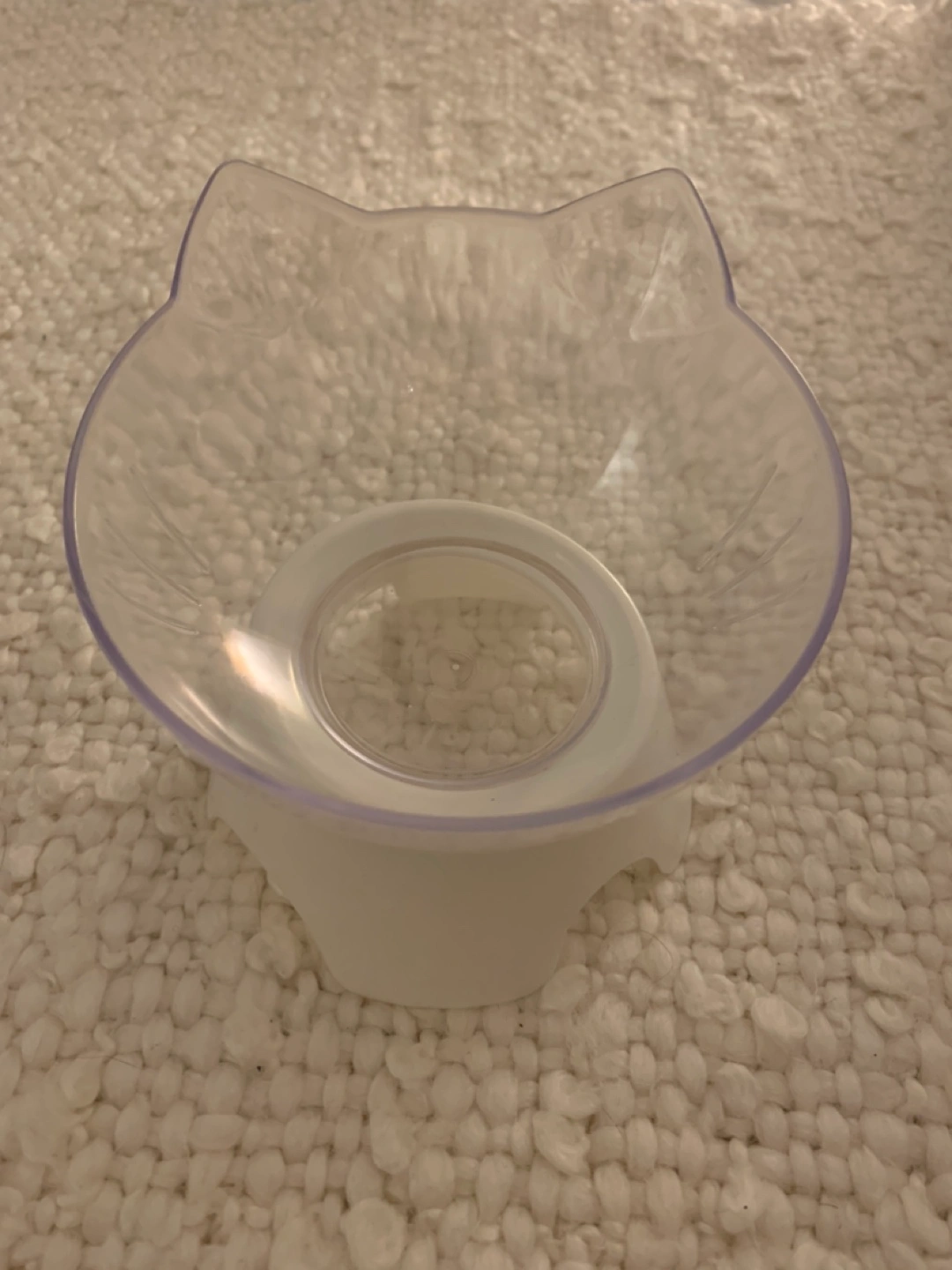 Cute cat-shaped bowl. Elevated design. Clear plastic with a white stand. Good for food or water. Used only once for a picnic Pick up near Spadina Ave & Front St W If posting is up, it is available! 😊 Will be prioritizing fastest pick up!