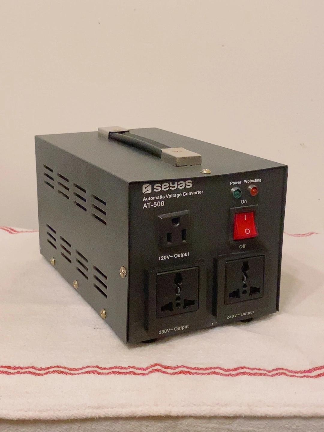Moving sale! 500W Automatic voltage transformer converter, featuring three AC outputs, one outlet/socket for 110-120 volts and two for 220-240. Original price: 63$ + Tax