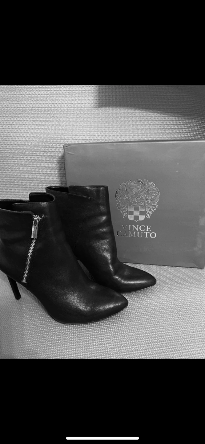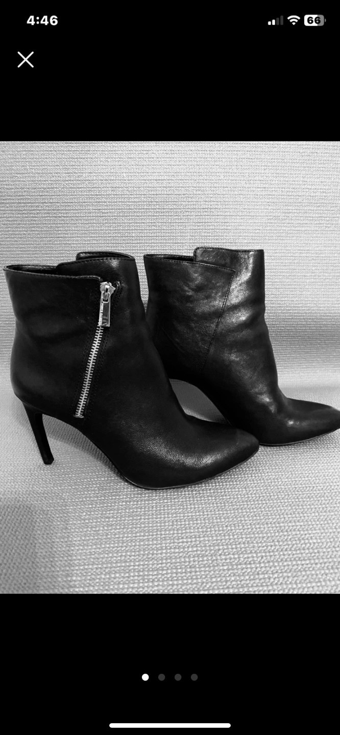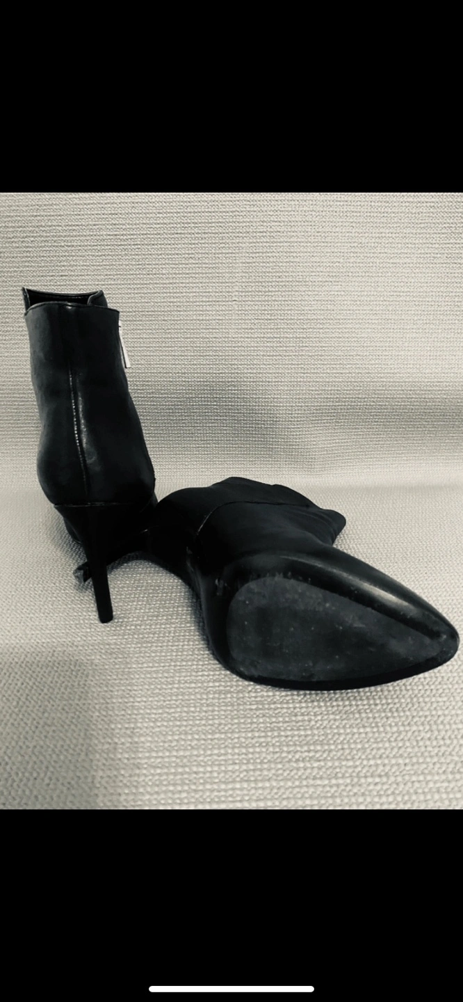 Elegant black leather ankle boots. Pointed toe. Stiletto heel. Side zip closure. Excellent condition. Size 9 1/2 Pick up in the Jane and Church Streets Area. Cash only