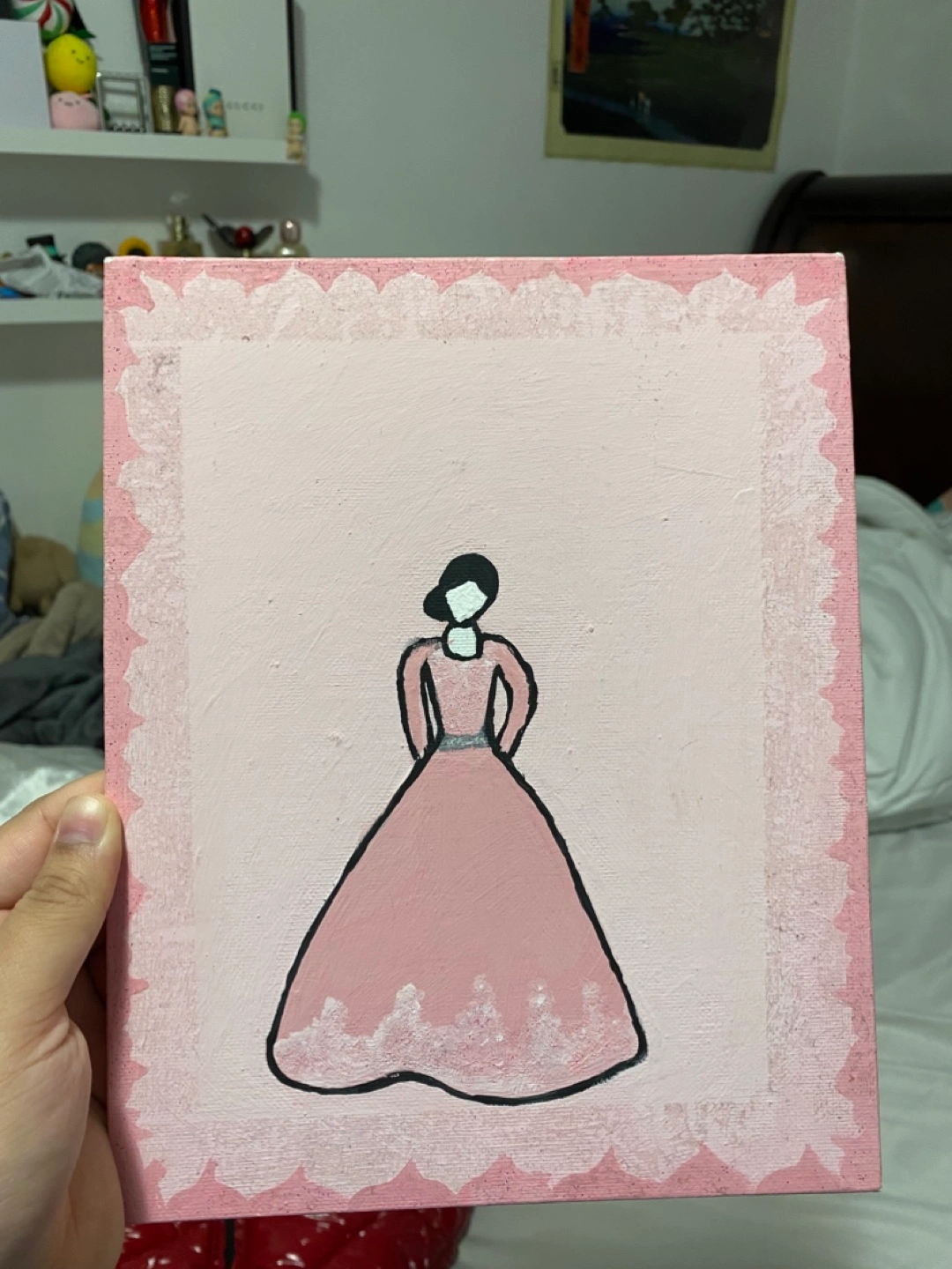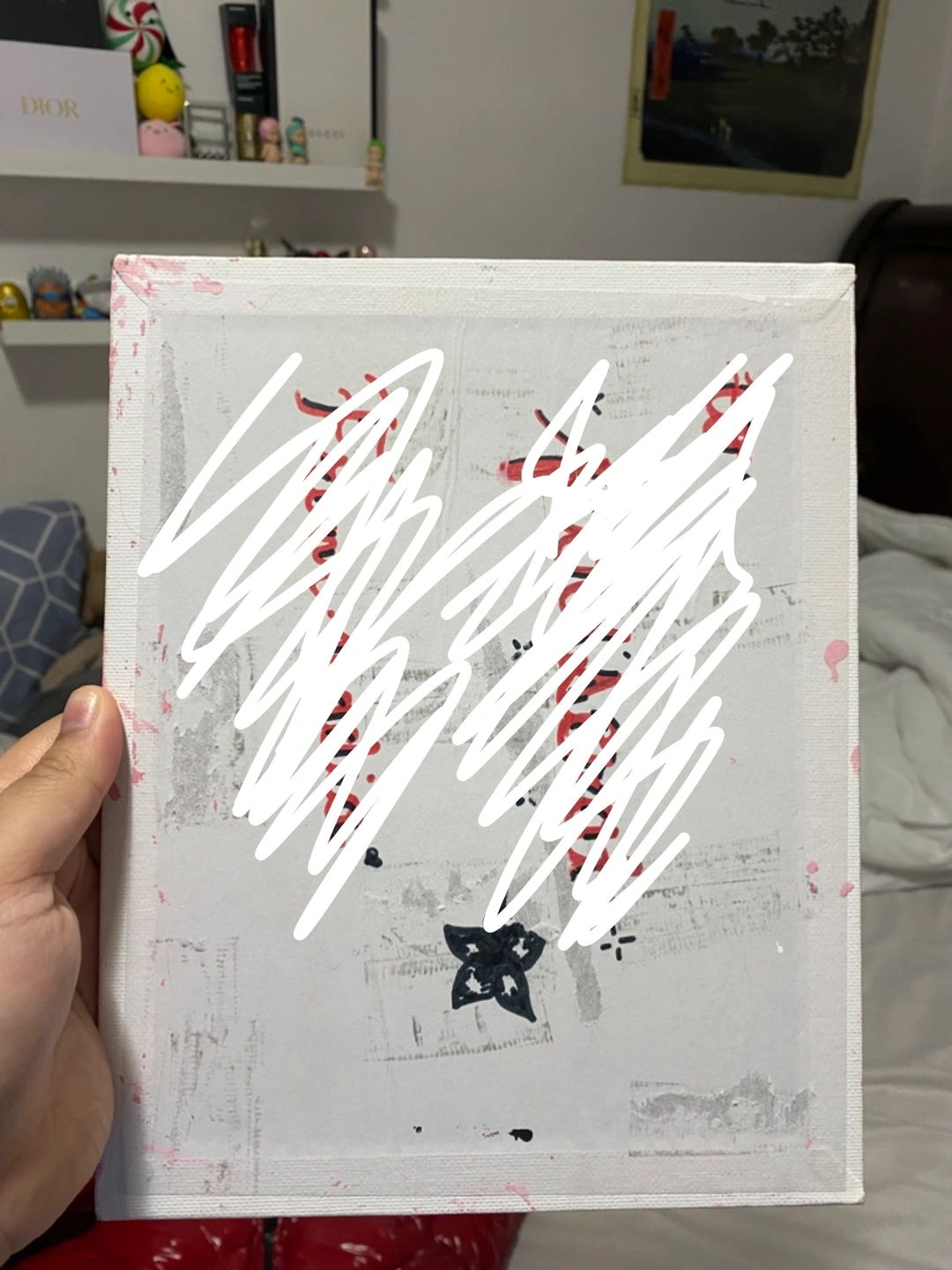 Good Condition! Unique artwork featuring a minimalist design. Painted on a small canvas. Pink colour scheme. Great for adding a touch of art to any space. Some paint splatters on the back. *This was actually hand painted on a canvas* Free! (PICKUP ONLY)