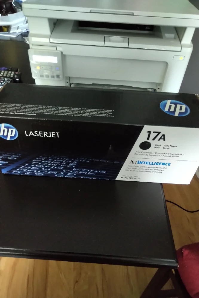 HP LaserJet Pro MFP M130nw wireless printer. Includes a new HP 17A black toner cartridge. Compact design, easy to use. Great for home or small office cute white color and good size that doesn't take up too much space 15 in across 8.5 in down. brand new print cartridge included Pick up Weston rd@401