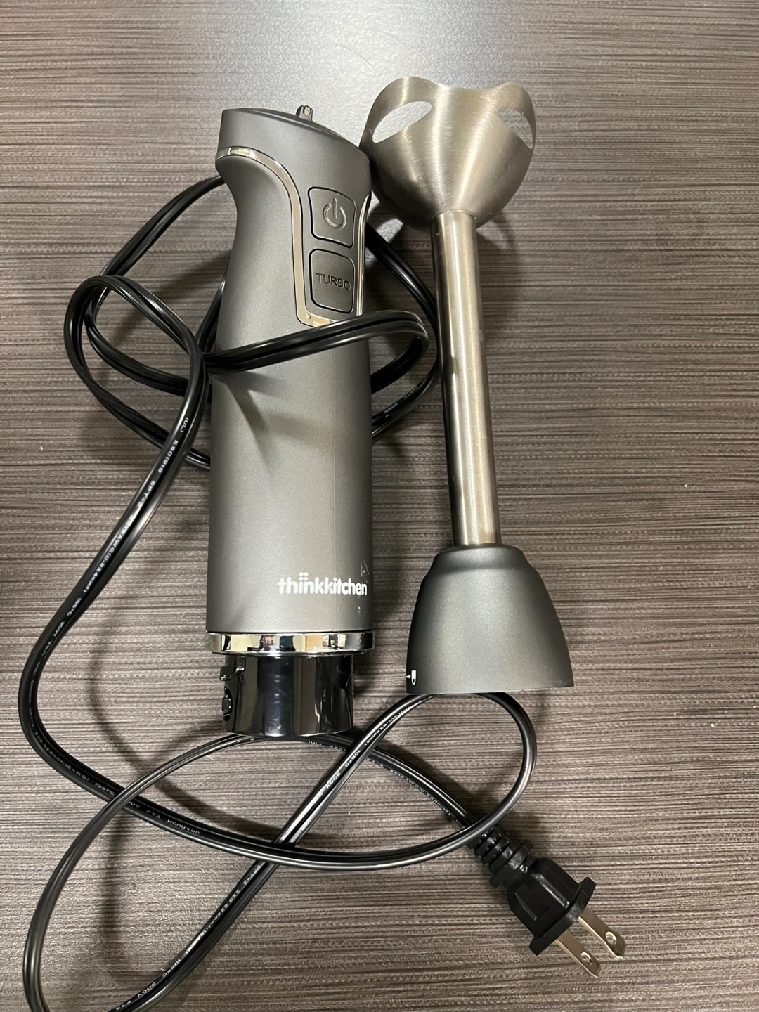 Thinkkitchen hand blender in excellent condition, used only a few times. Features multiple speeds and a turbo function. Stainless steel blending attachment.