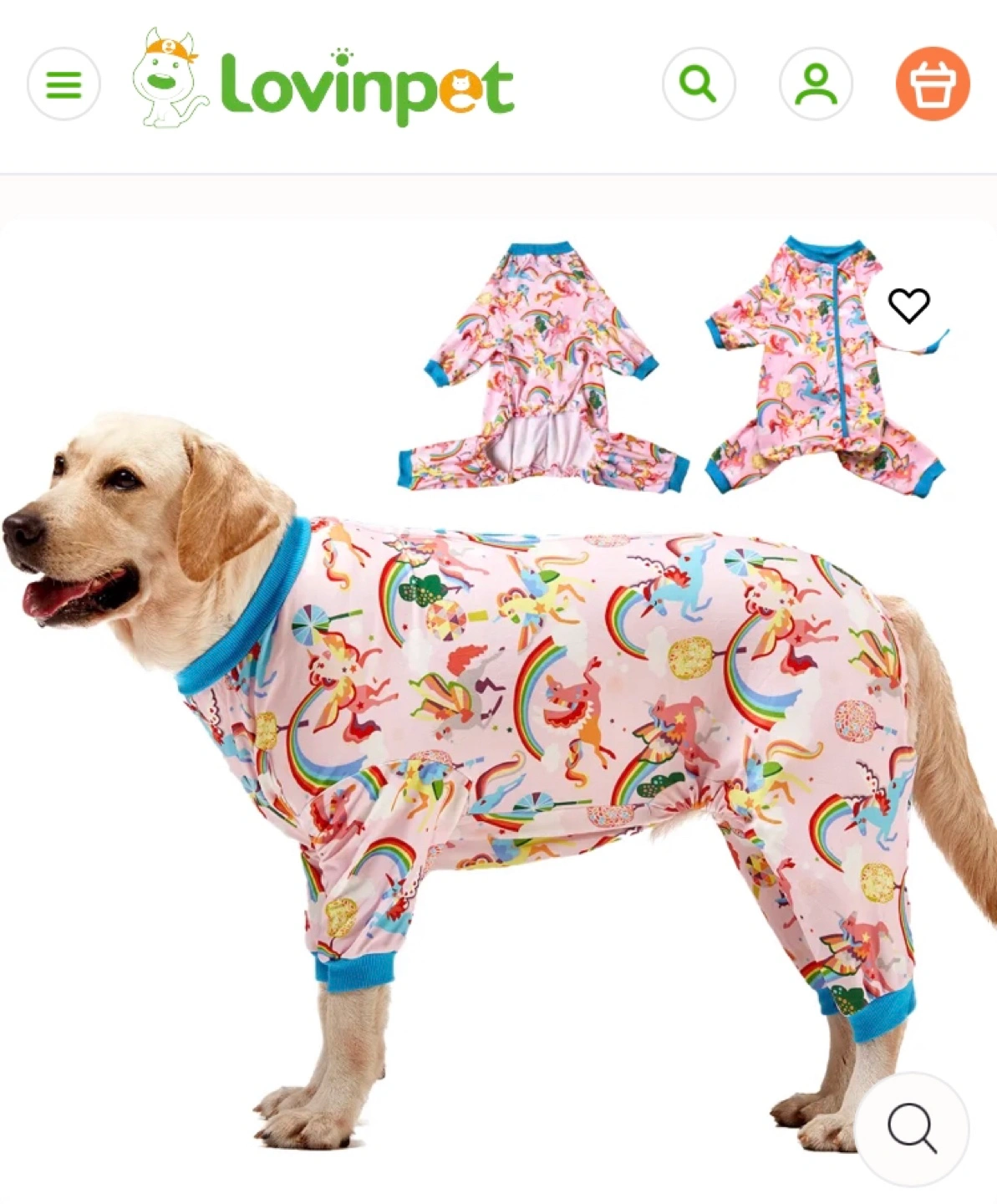 Adorable dog pajamas. Pink with unicorn print. Features long sleeves and legs. Xxl size. Great for keeping your dog warm or for post-recovery. Pick up Stouffville See my other dog cones etc