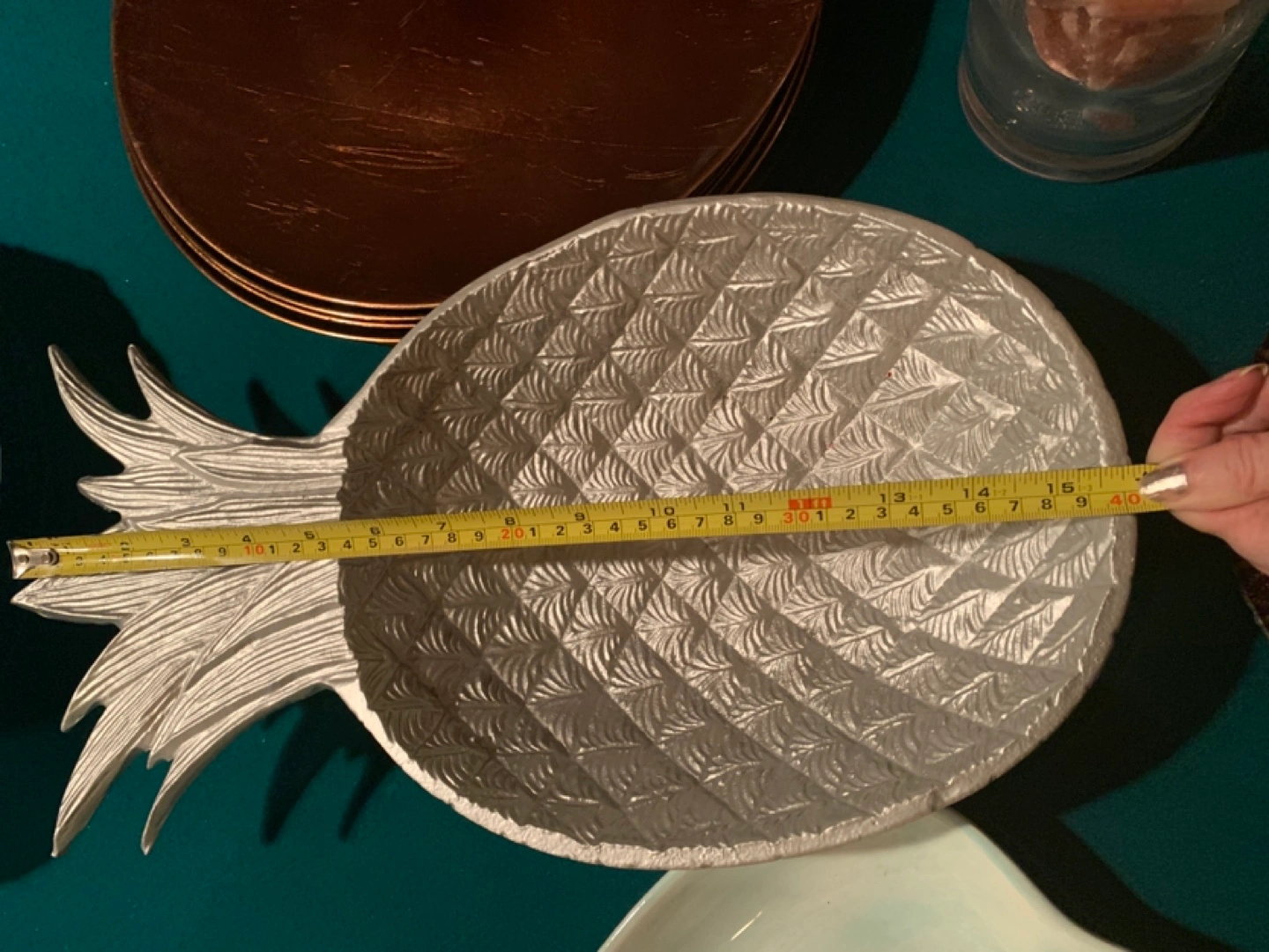 Silver coloured metal bowl. Pineapple design. McCowan and 16th porch pick up ONLY. Cash ONLY. *** MOVING SALE…. See all my other items. Many are only $5.