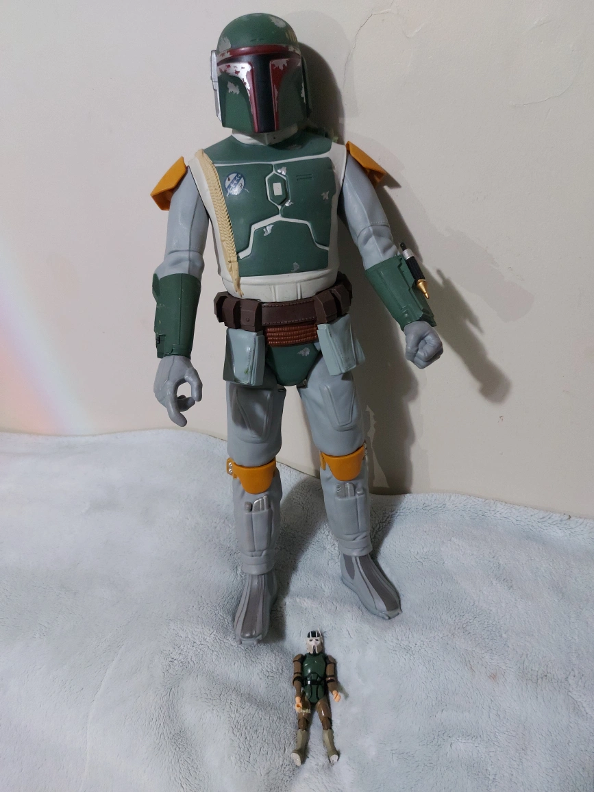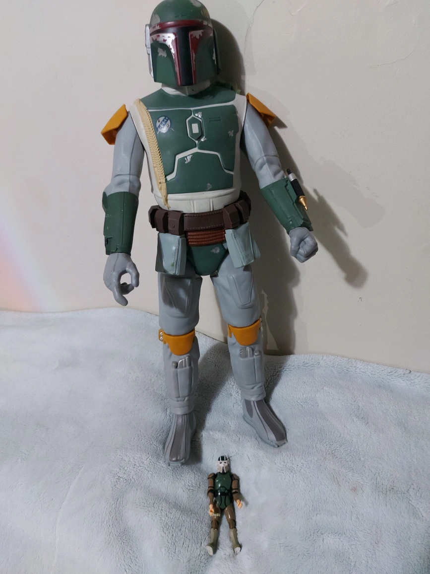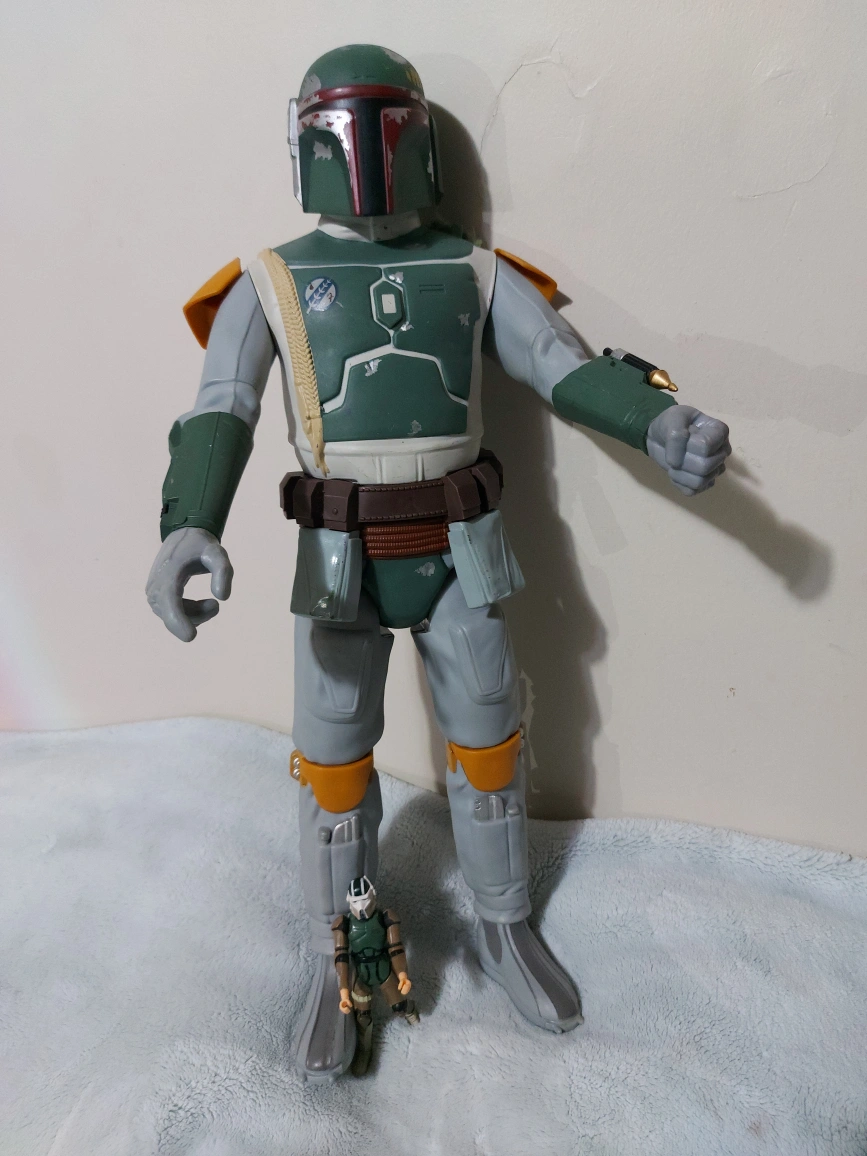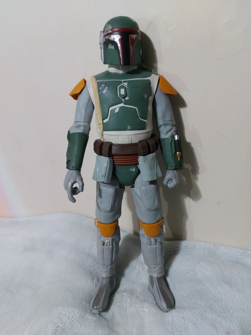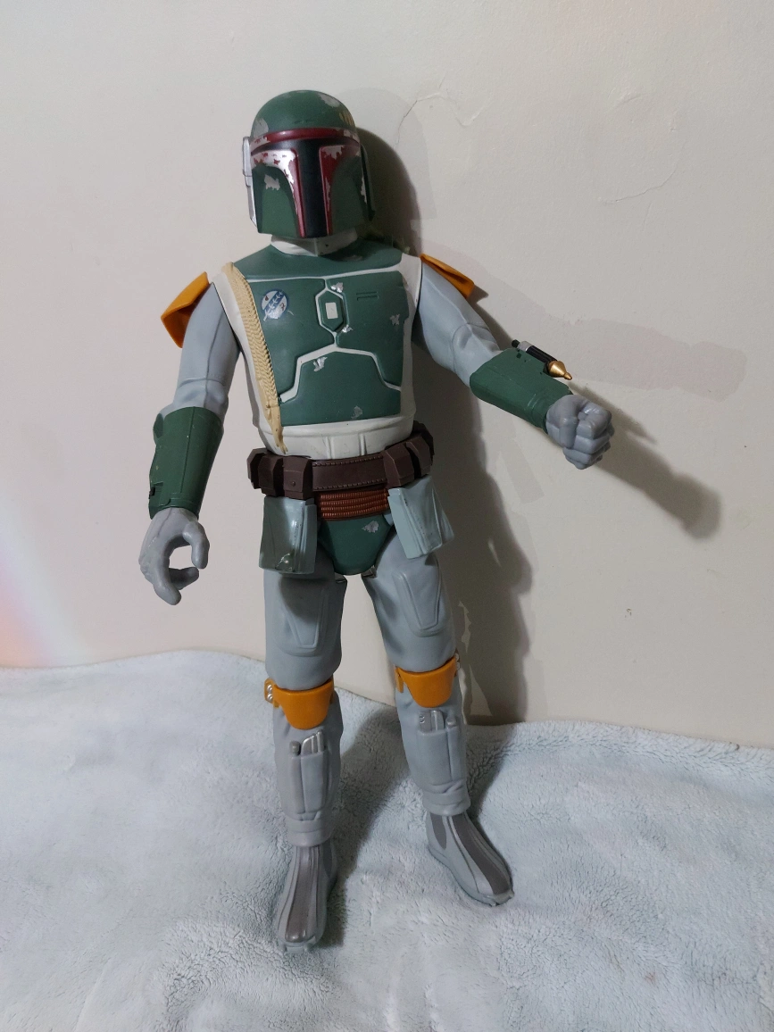 Large Boba Fett action figure. Posable figure. Shows some wear.