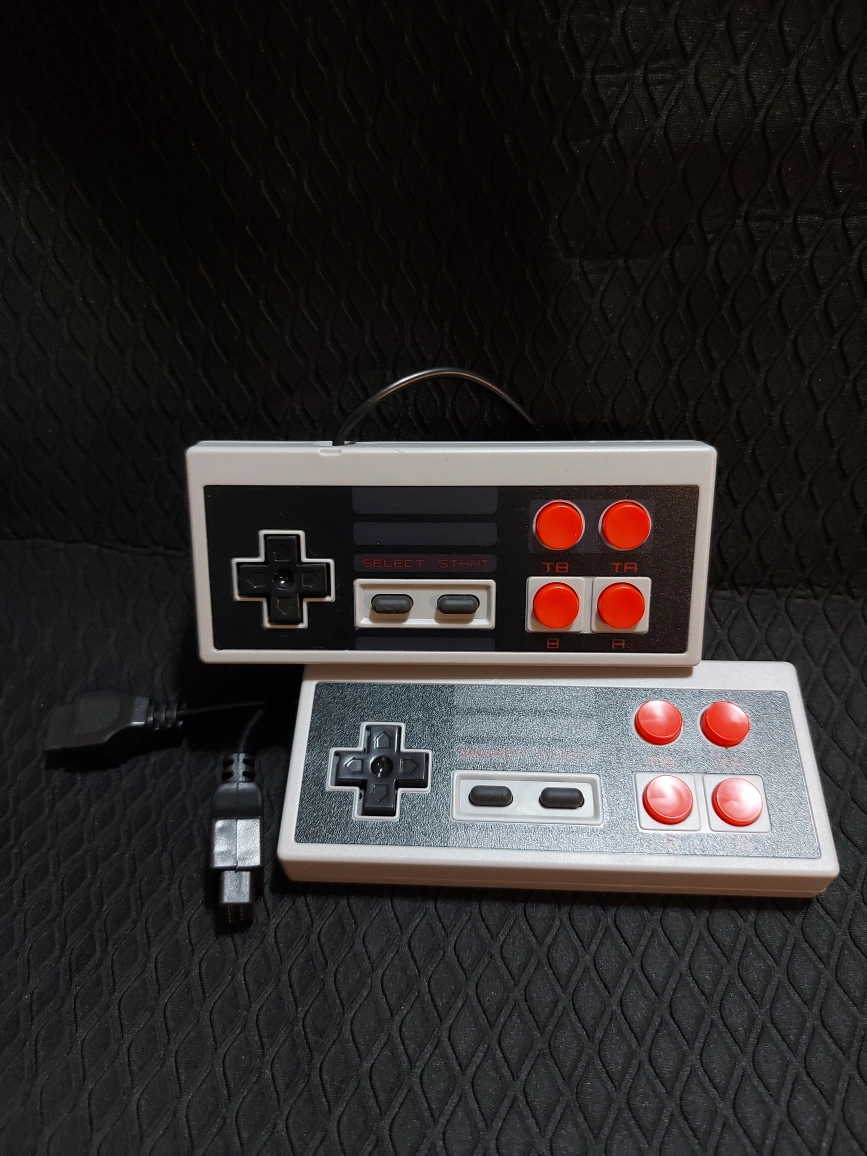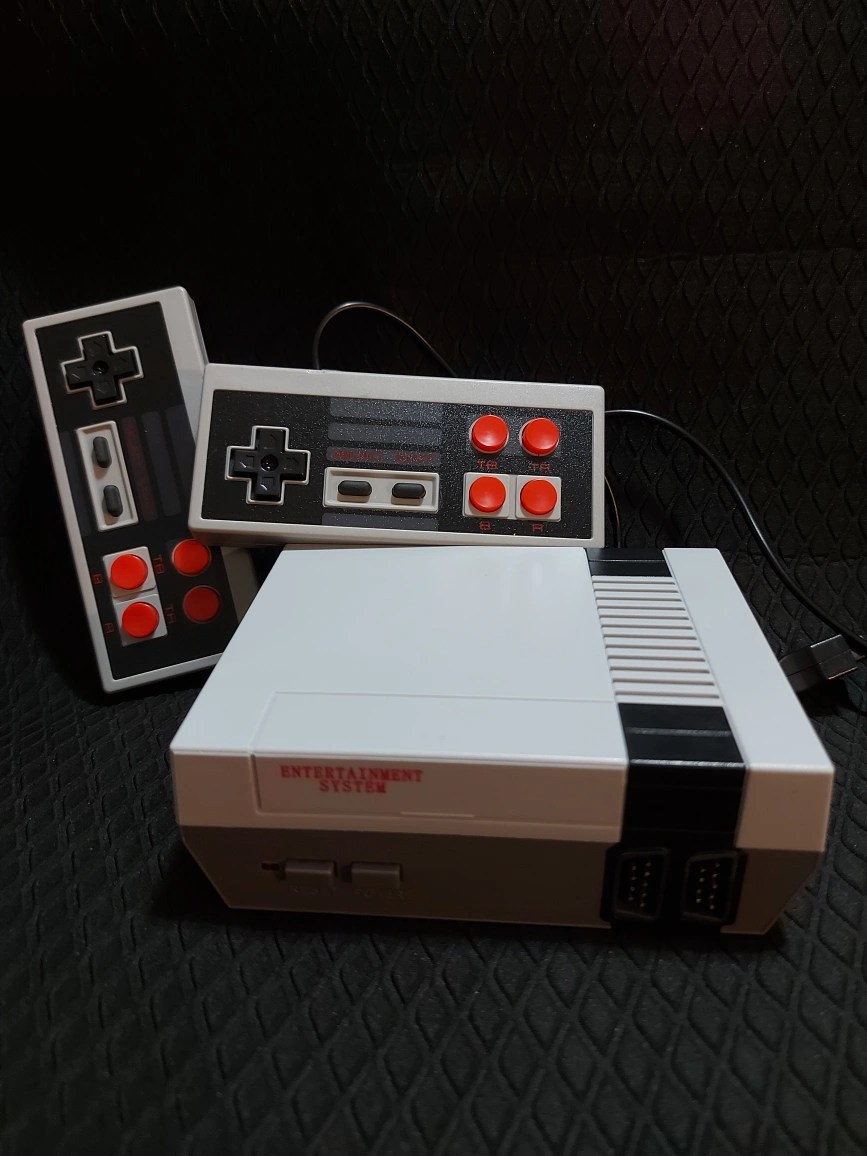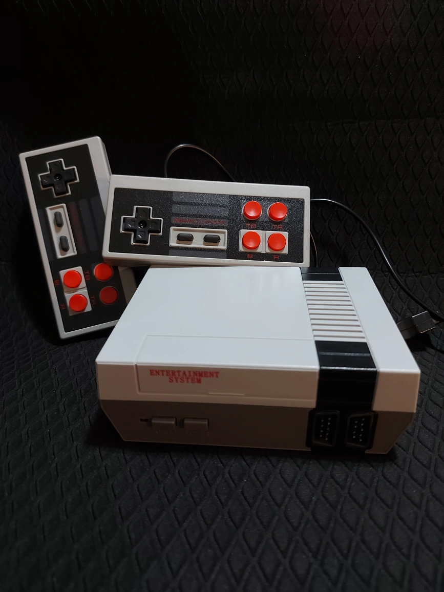 Miniature classic gaming console. Two wired controllers included. Great for retro gaming.
