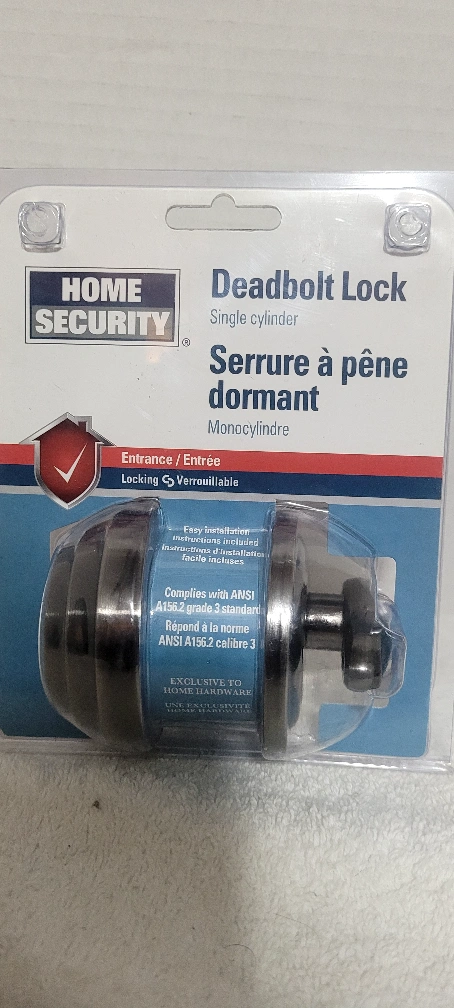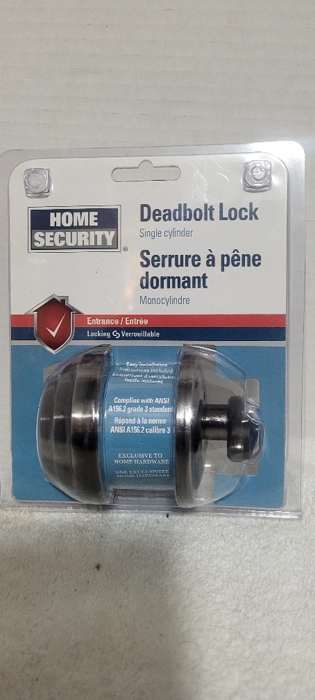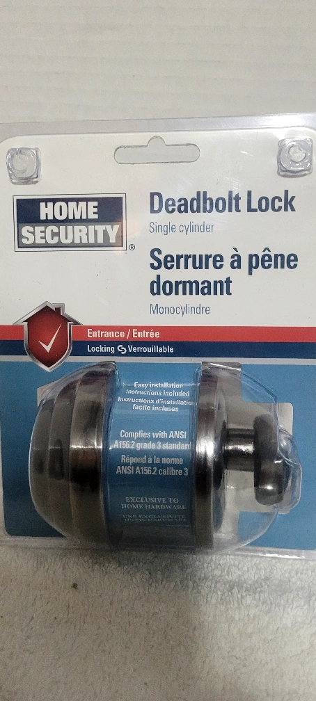 New, unopened Home Security deadbolt lock. Single cylinder. Easy installation. Complies with ANSI A156.2 standard.