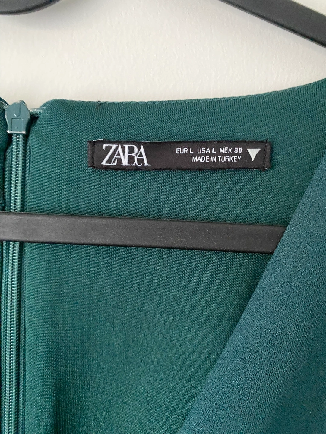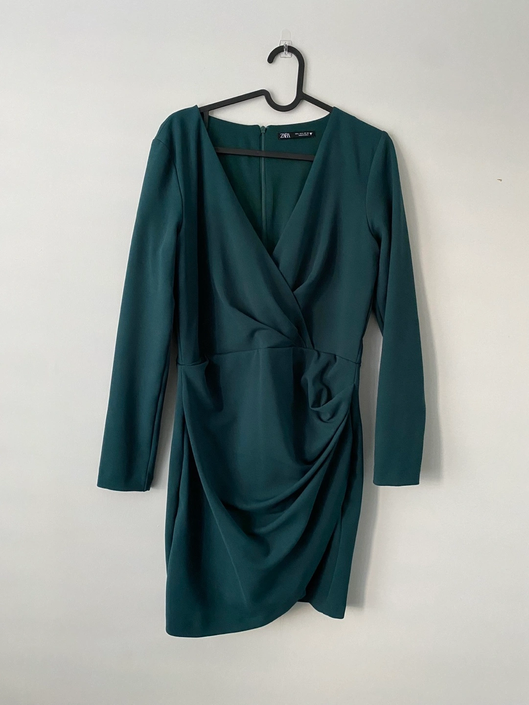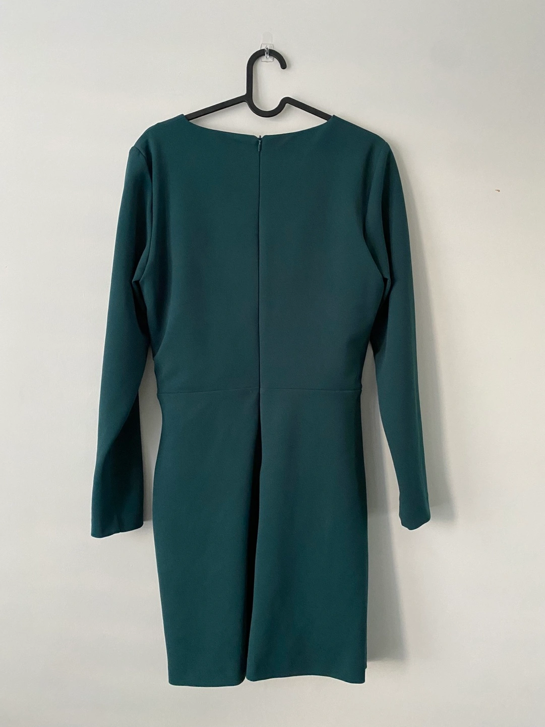 Gorgeous emerald green mini dress. Long sleeves, wrap style, and a flattering silhouette. Perfect for a night out or special occasion. Size L.