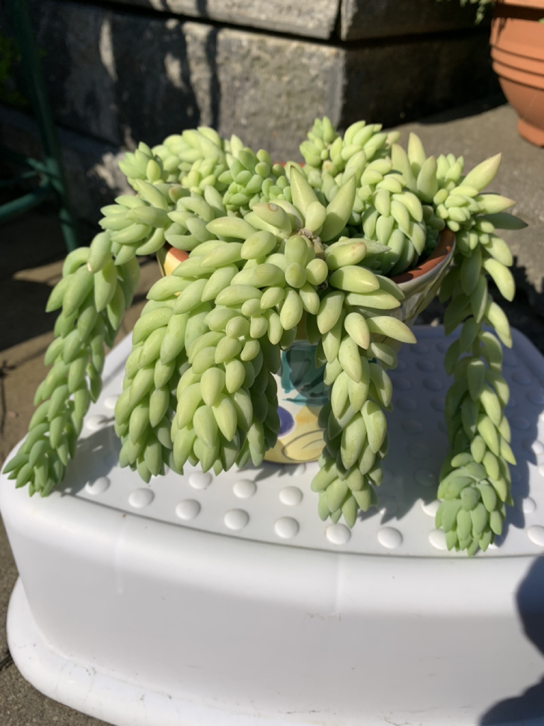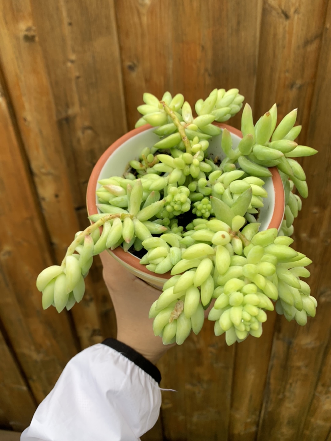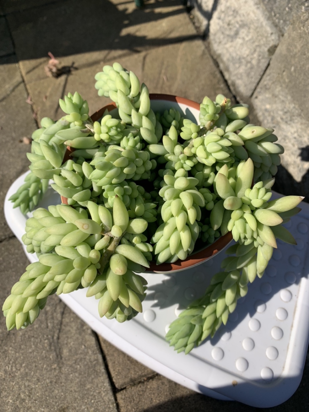 Sedum morganianum, the donkey tail or burro's tail, is a species of flowering plant in the family Crassulaceae, native to southern Mexico. Super cute ceramic pot also! Pick up around islington station.