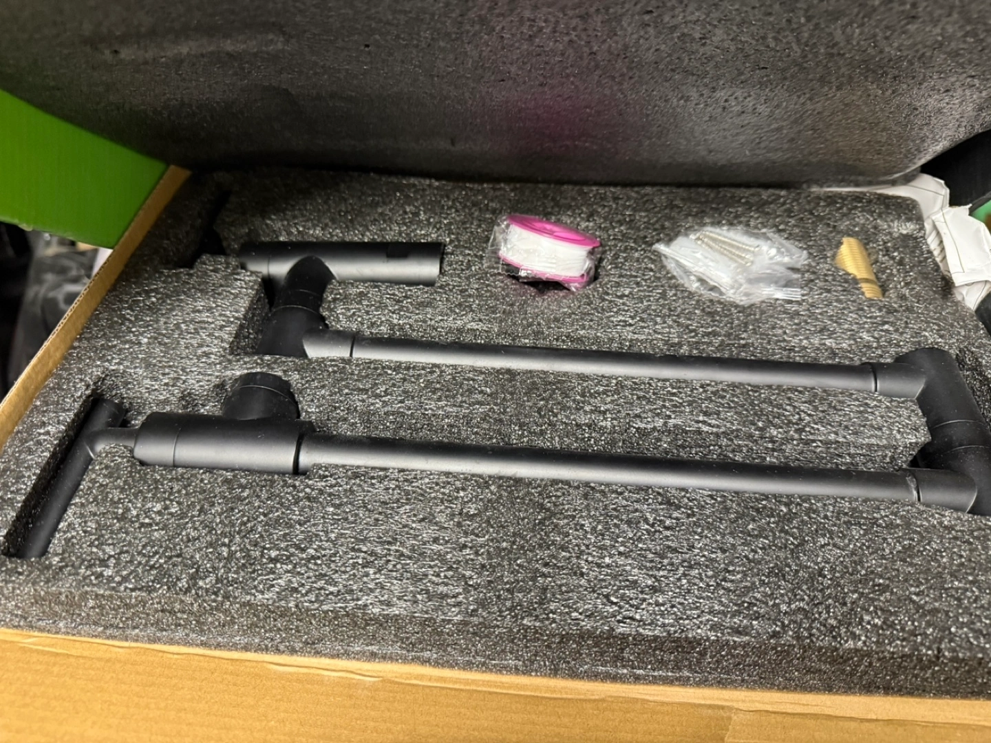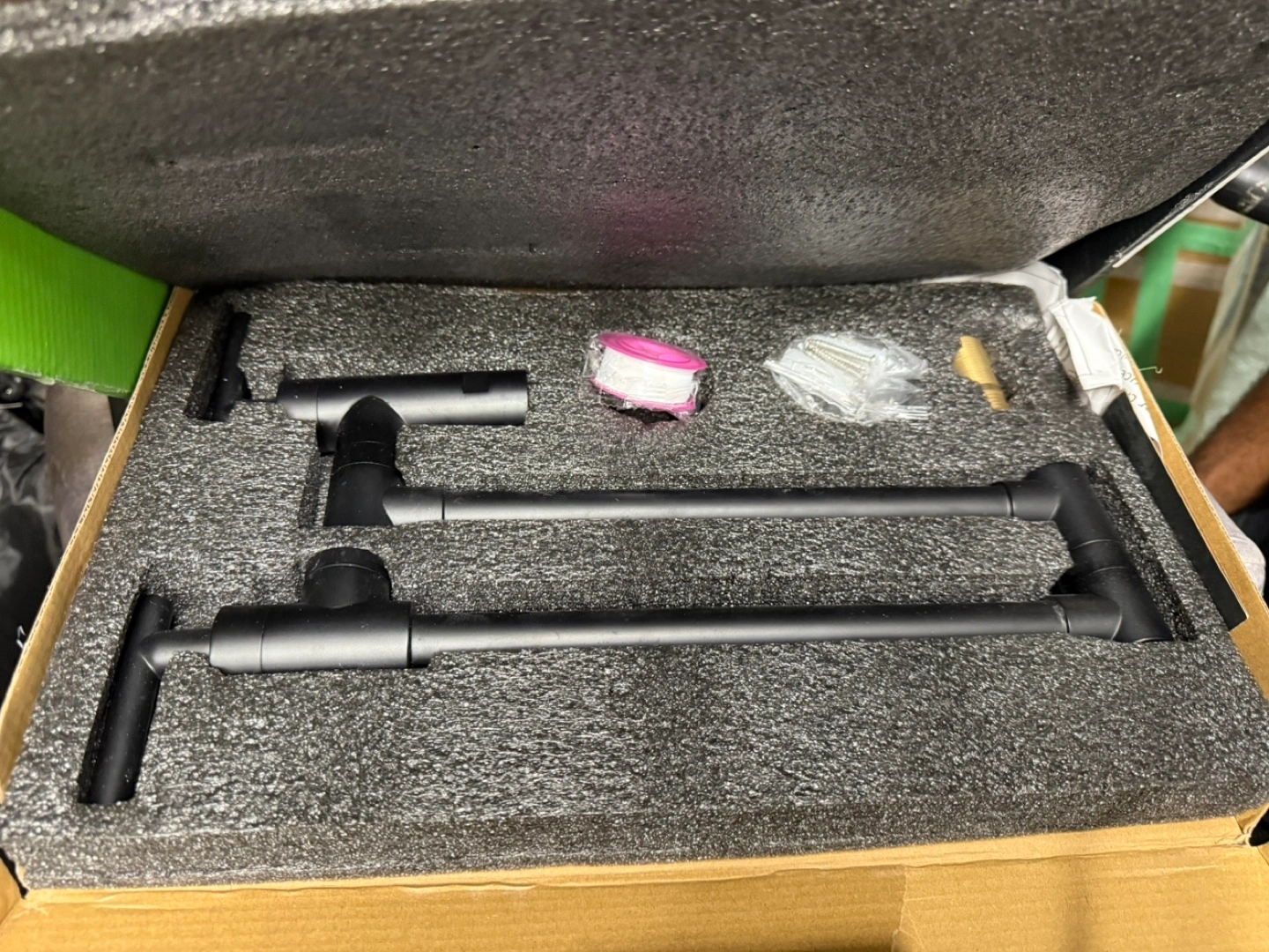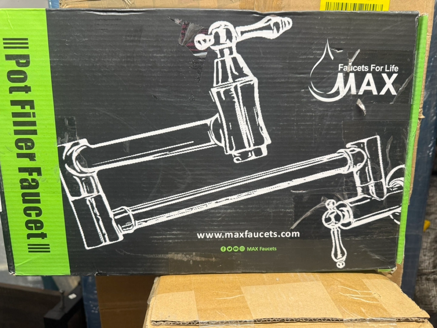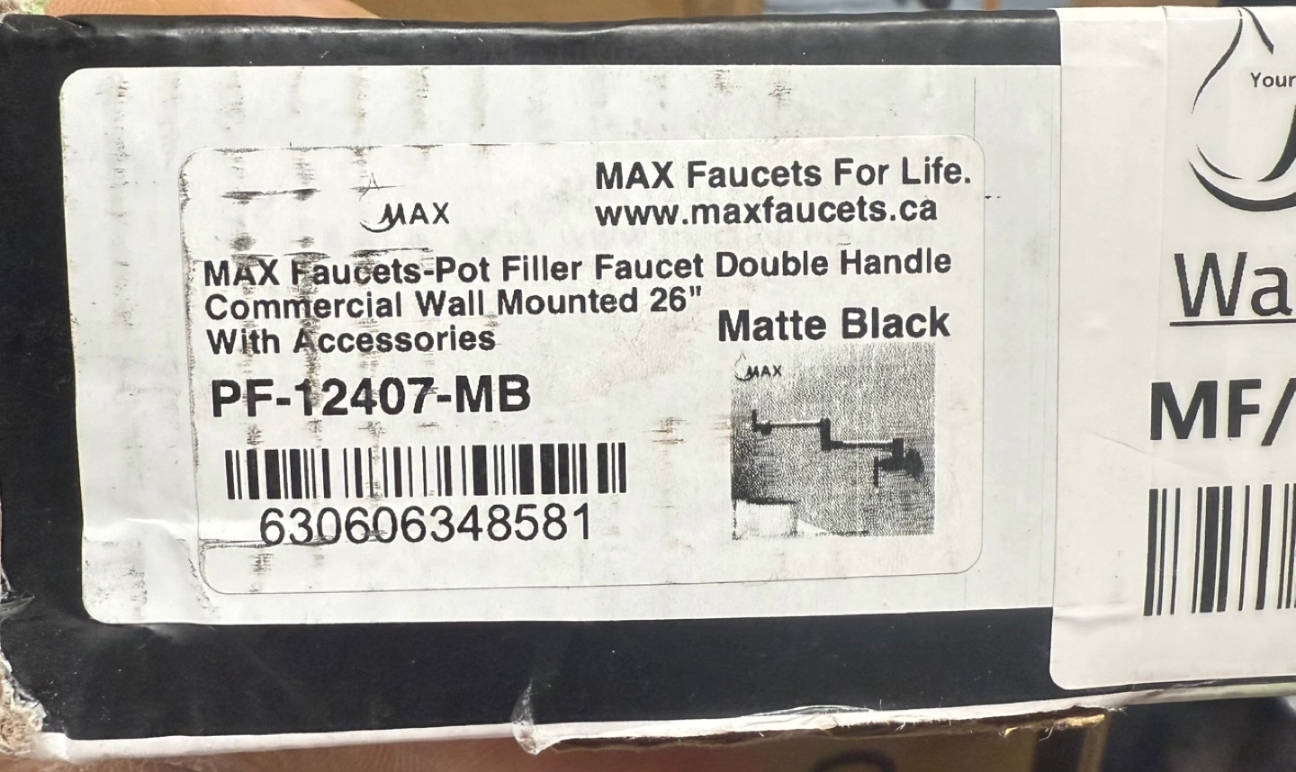 Commercial wall-mounted double handle pot filler faucet. 26" Matte black finish. Includes accessories. New in box.