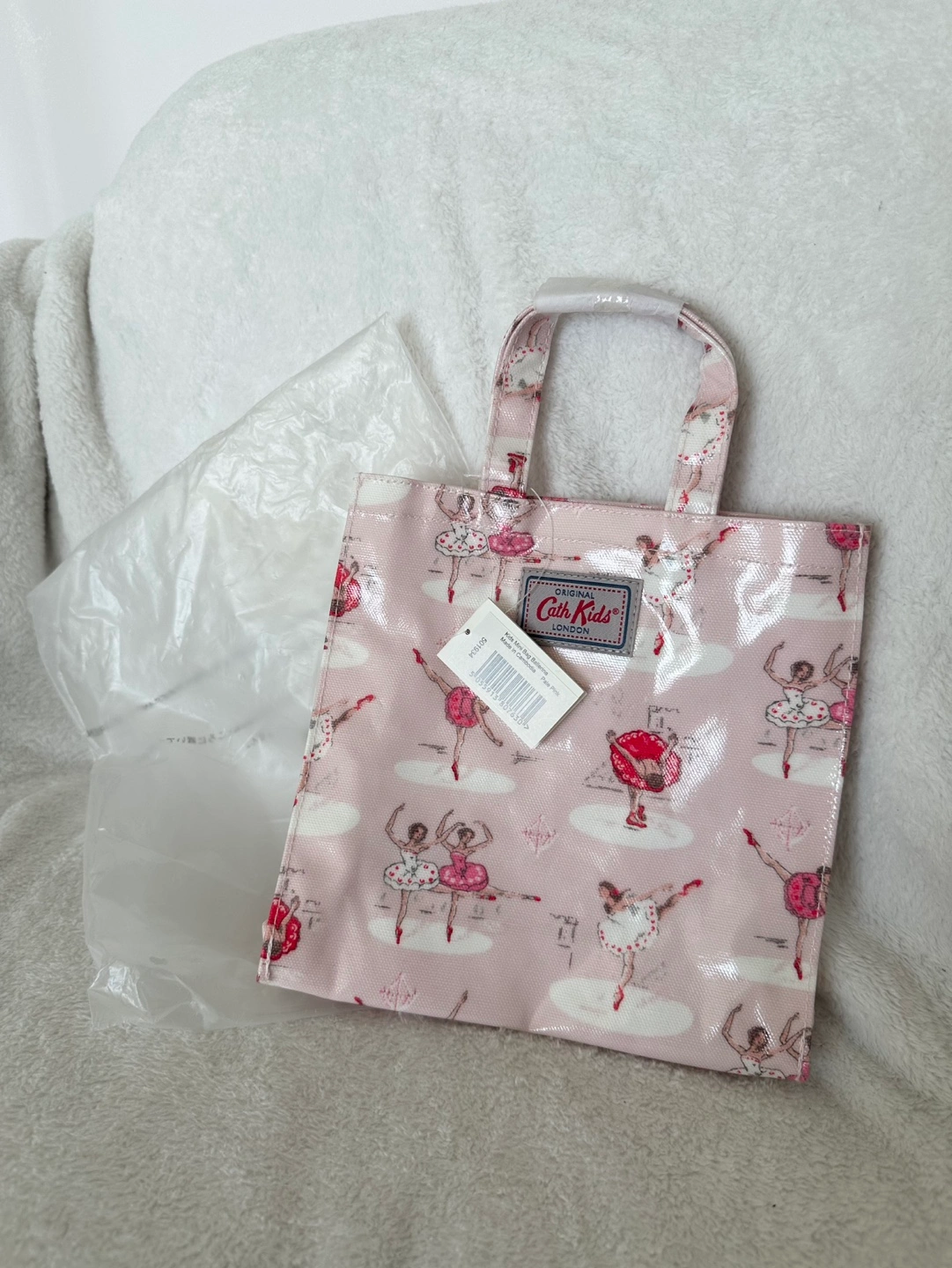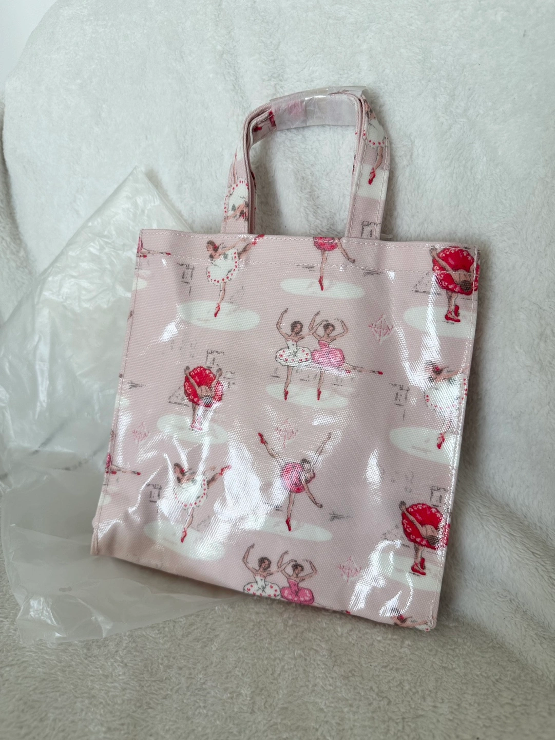 New and authentic - still has the original packaging. Great for everyday or for kids Adorable ballerina-themed tote bag. Perfect for carrying small items. Features a pink background with ballerina illustrations. New with tags.