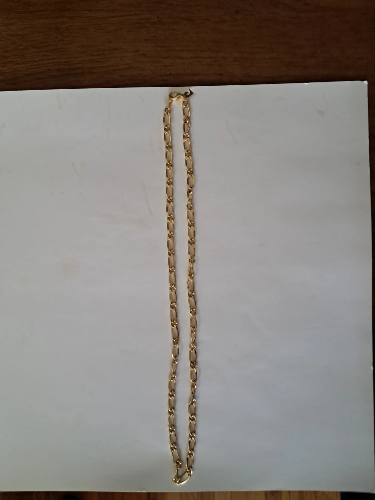 Beautiful gold Figaro chain necklace. Measures approximately 22 inches long. Great for everyday wear.