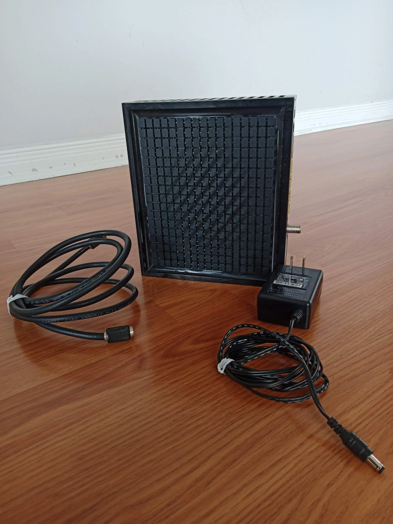 Pre-owned Advanced Wi-Fi Modem. Includes power adapter and coaxial cable. Check out my other listing. There may be something else you're also interested.