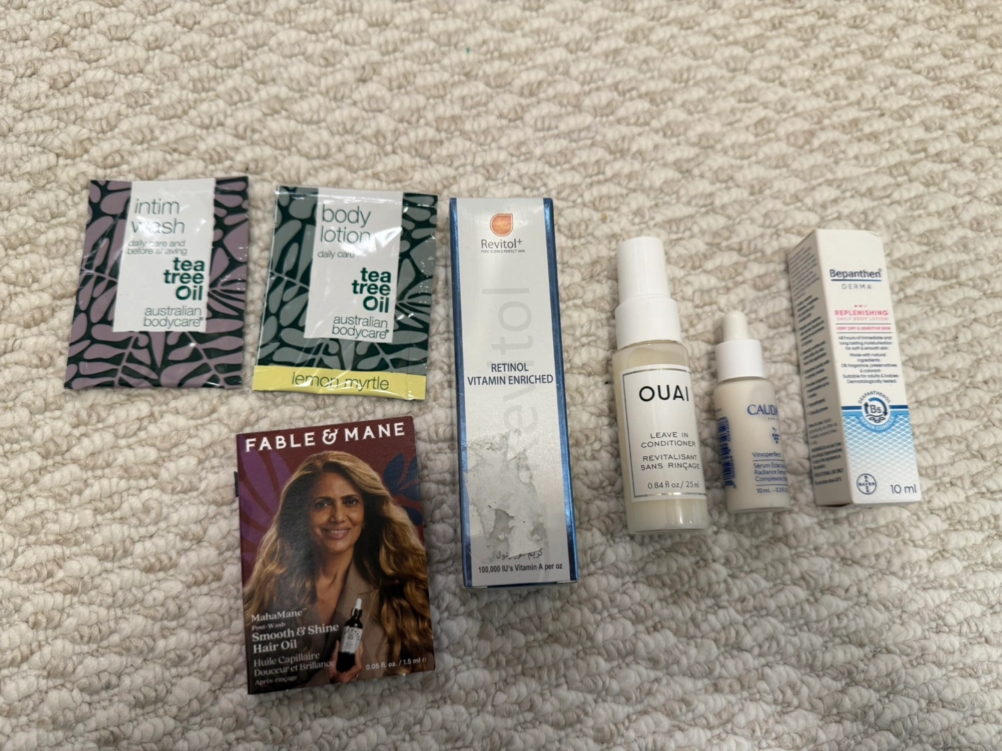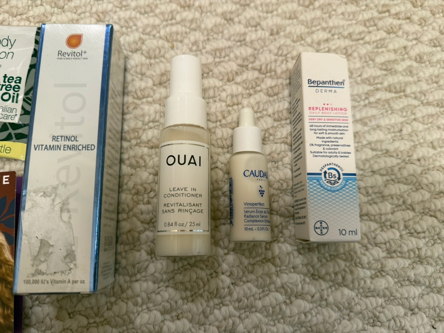 Grab this amazing bundle of beauty products! Includes travel sizes and full sizes of various brands. Perfect for trying new products or replenishing your favourites. Ouai leave-in conditioner, Caudalie serum, Bepahten lotion, and Revitol retinol. Also includes tea tree oil samples. $10 for all