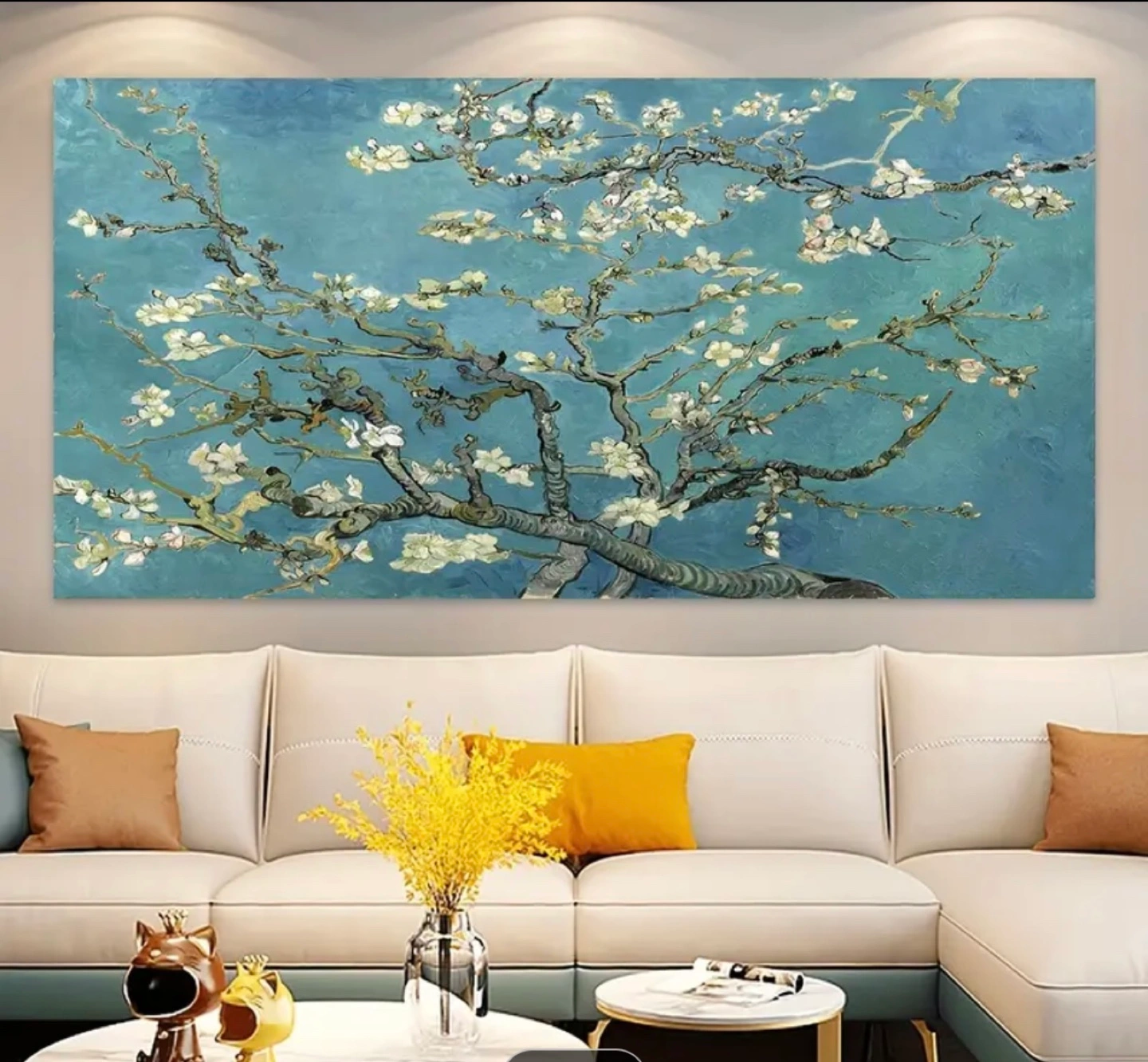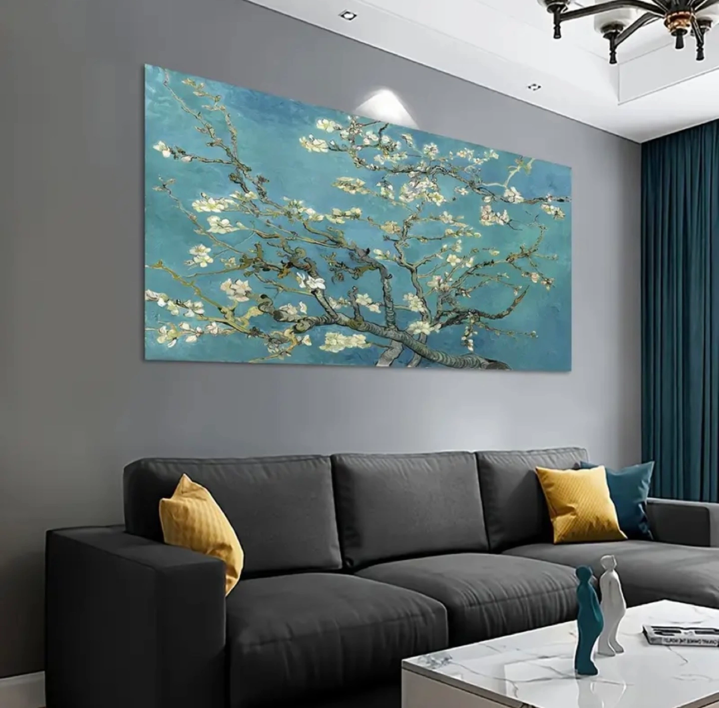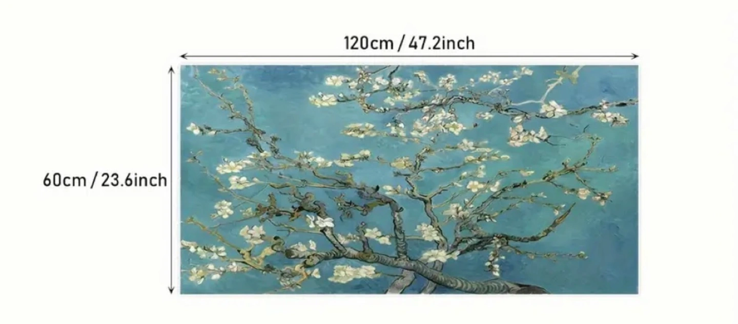 Gorgeous reproduction of Van Gogh's Almond Blossom. Measures 120cm x 60cm. Perfect for living room decor. High-quality canvas print. Ready to hang. 1pc Art Deco Floral Canvas Wall Art Print - Frameless Almond Blossom Landscape Ink Artwork for Living Room, Bedroom, Home Office, Classroom - Indoor Transverse Orientation, Waterproof Odorless Fabric Poster, Ideal Gift for Friends and Family