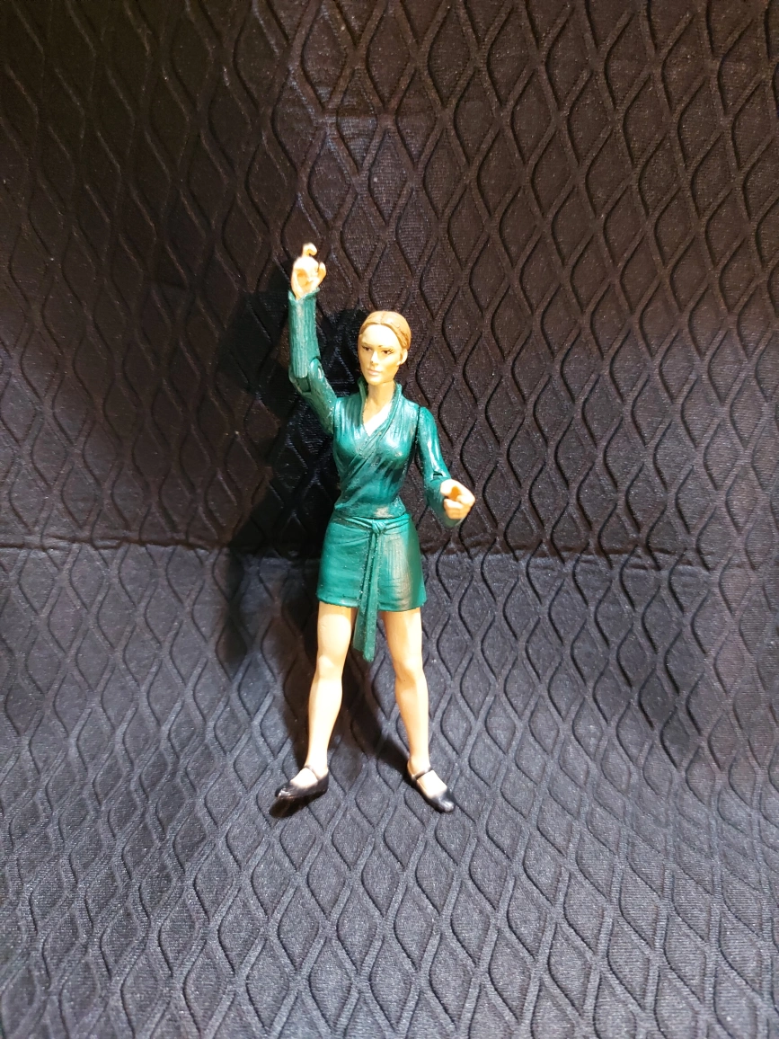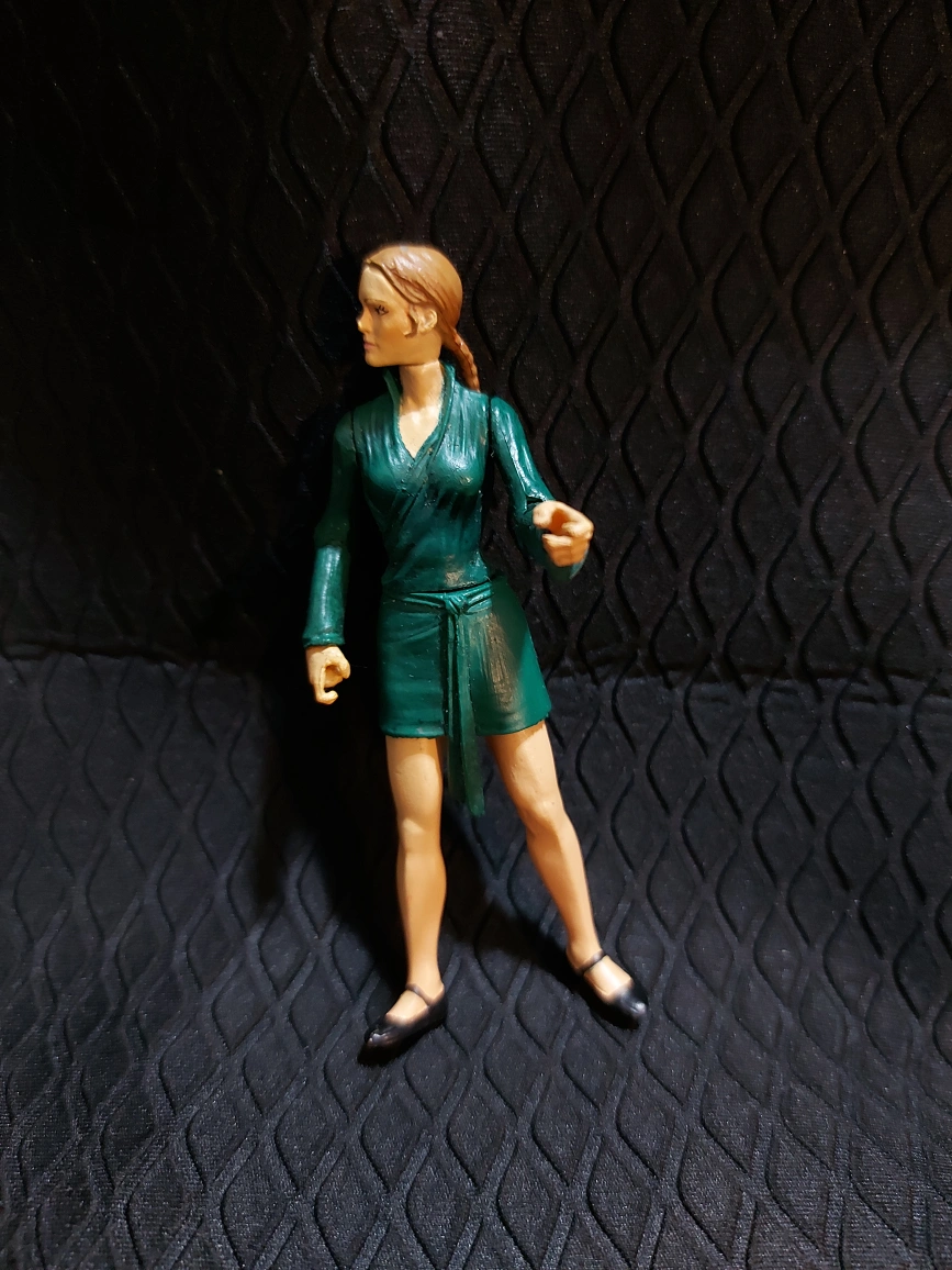 Collectible female action figure. Wears a teal mini dress. Posable. Good condition.