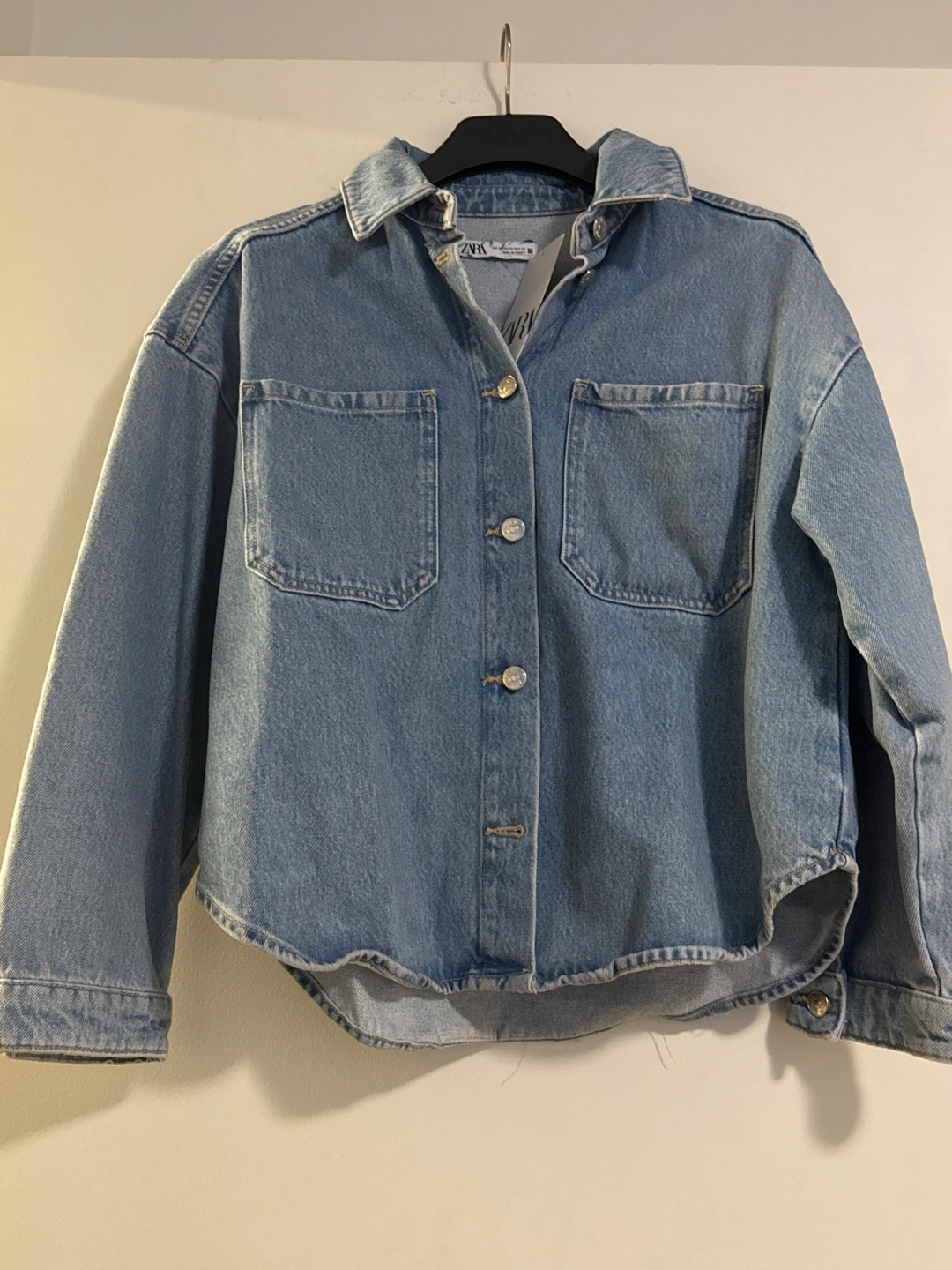 Light wash denim jacket. Relaxed fit. Button closure. Two chest pockets. Made in Turkey. Size XS.