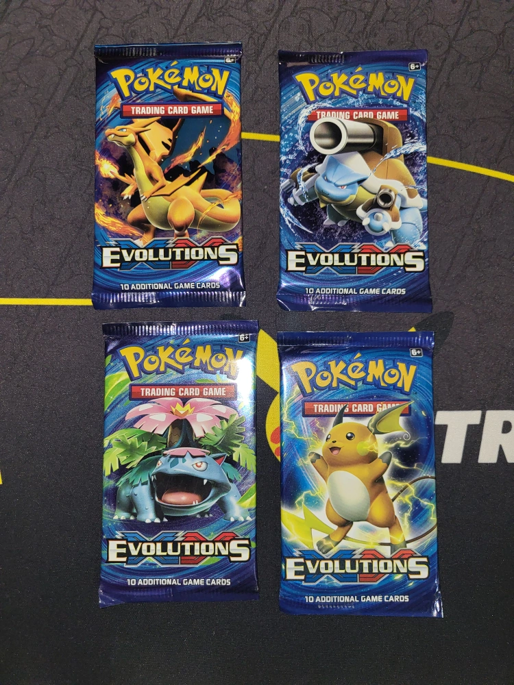 Sealed. XY Evolutions Packs x1 Mega Charizard pack x1Mega Venusaur pack x1 Mega Blastoise pack x1 Raichu pack They're from tins & boxes I opened