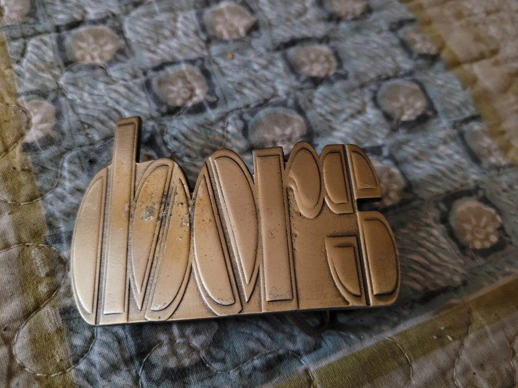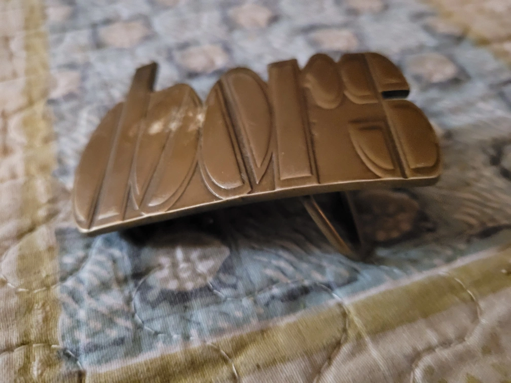 Cool vintage belt buckle. Features the band's logo. Metal construction. Shows some wear.
