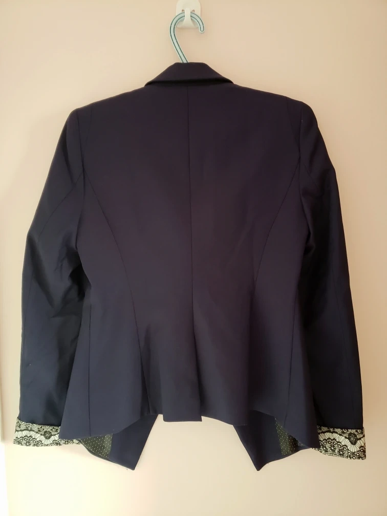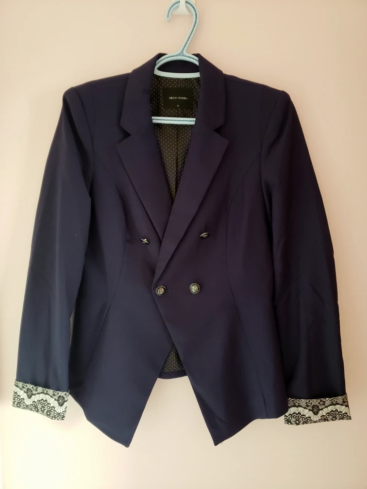 Stylish navy double-breasted blazer with unique lace pattern on the cuffs Size: 36 or Women's XS-S Bought in Hong Kong from G2000 Women In excellent condition and was rarely worn Hoping the item finds a new home! From a smoke-free & pet-free home Cash only & exact change All sales are final; no refunds or reservations Pick-up only Location: Richmond Hill Serious inquries only; messaging only through Karrot Thank you for your interest & please check my other listings for more!