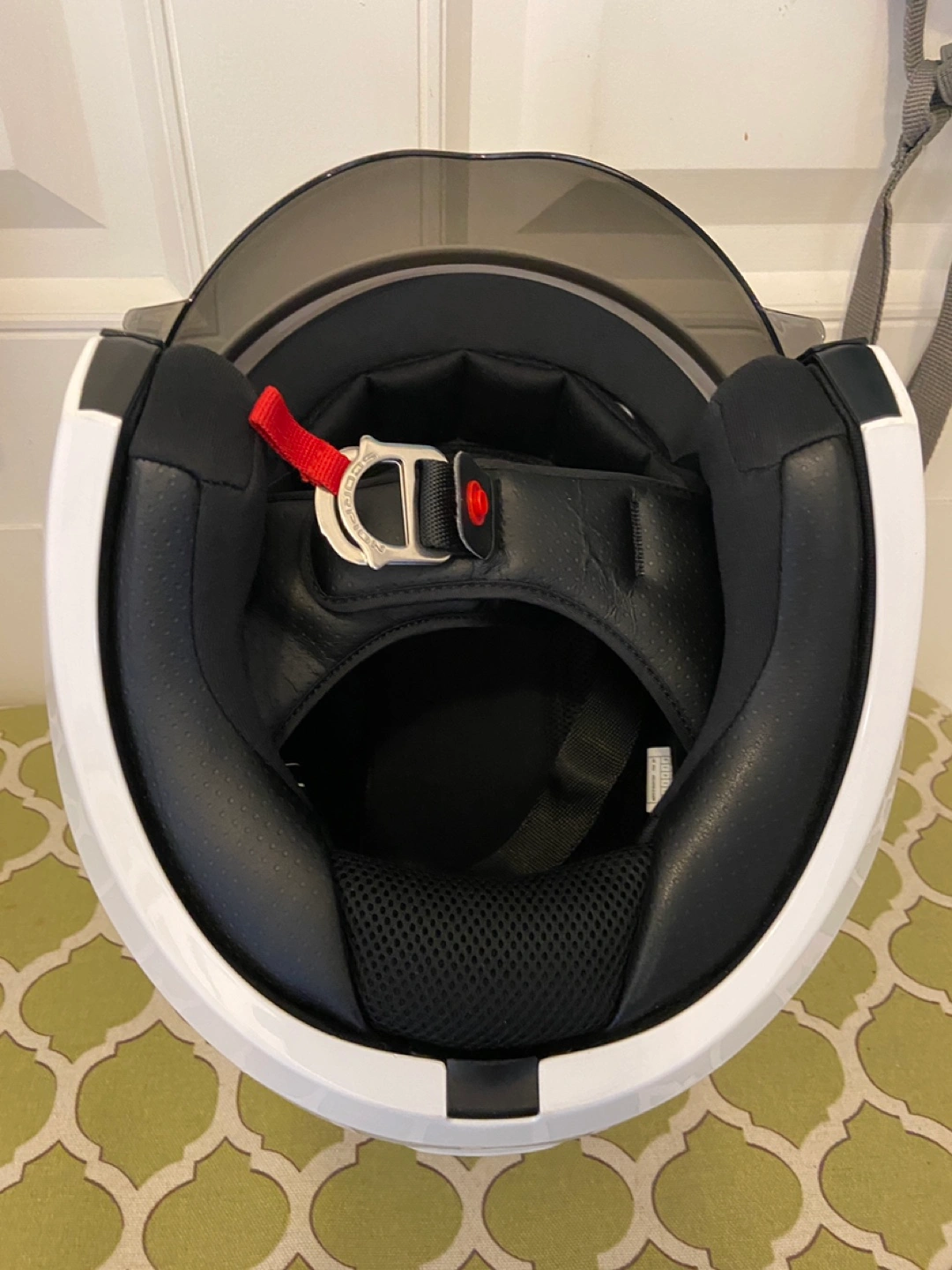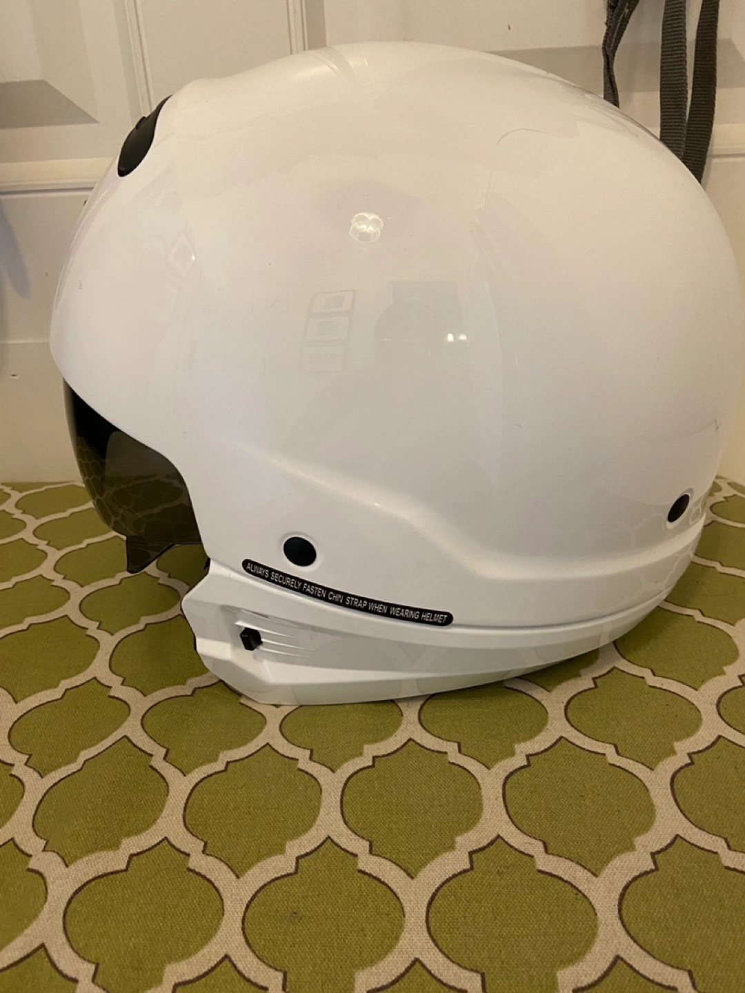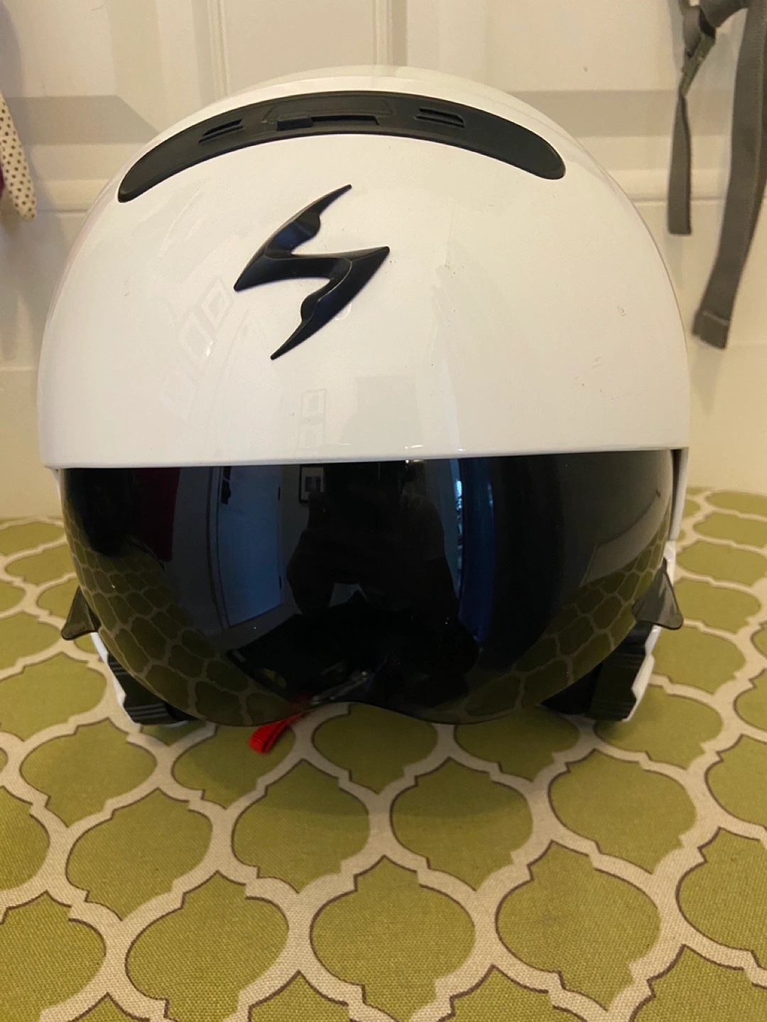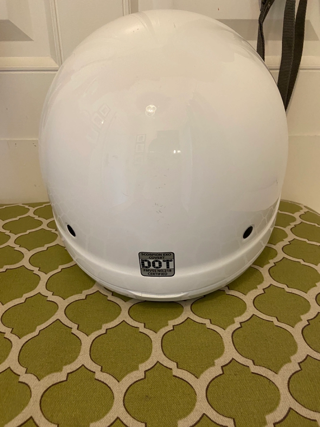 White Scorpion Exo-R1 Air motorcycle helmet. Large size. DOT approved. Includes a drop-down sun visor. Excellent condition.