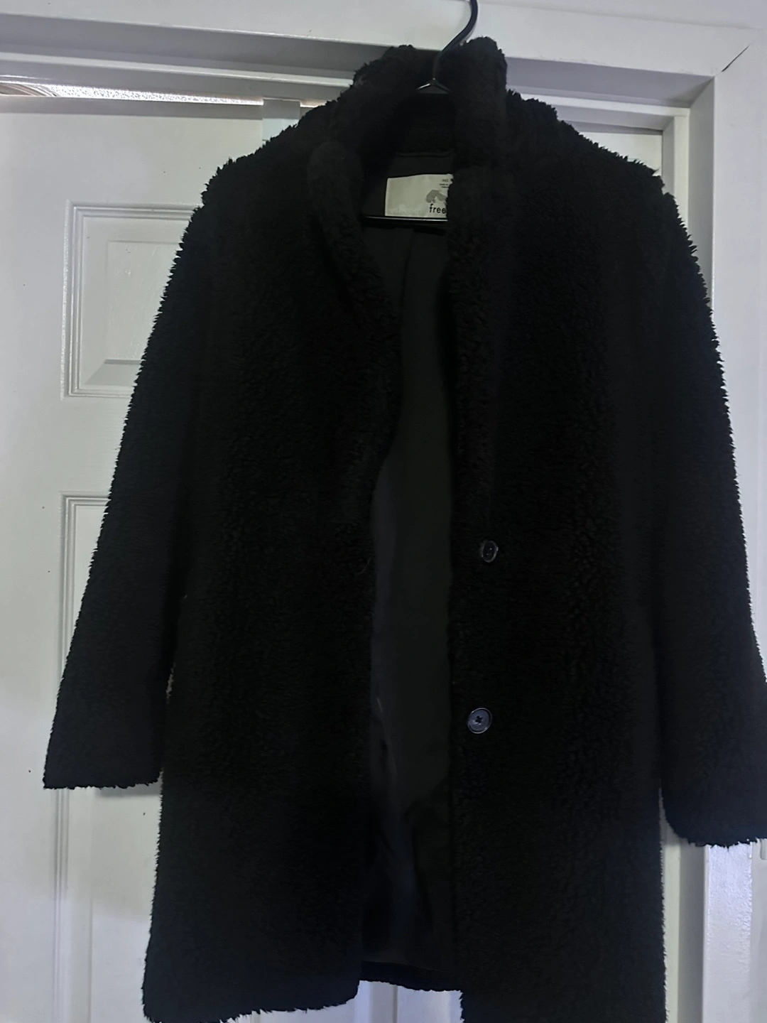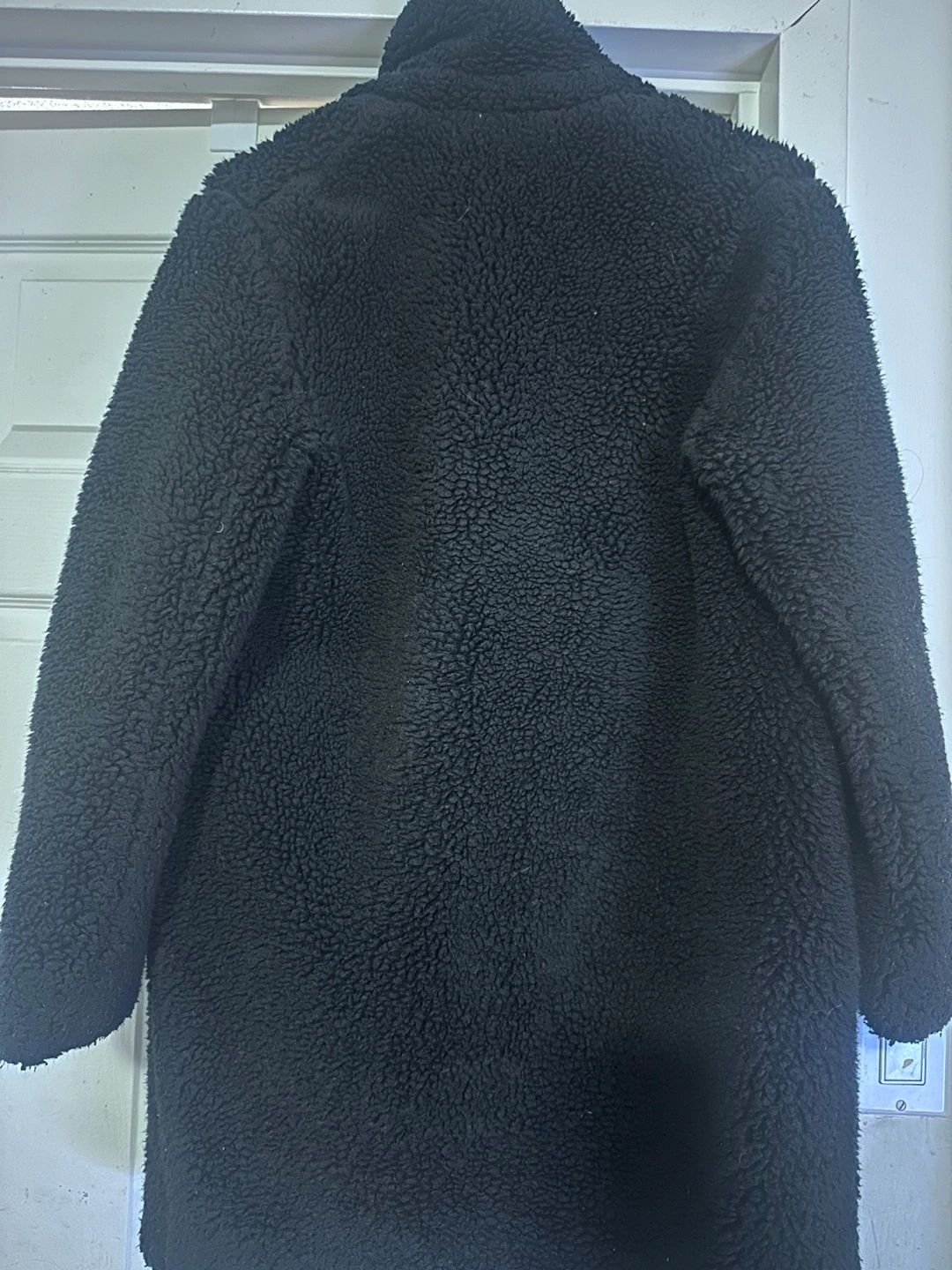 Long black teddy coat. Soft material. Size XXS Button closure.