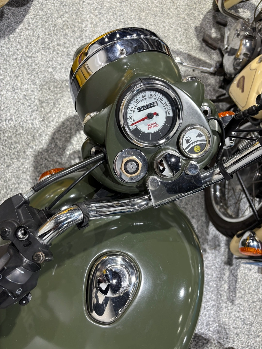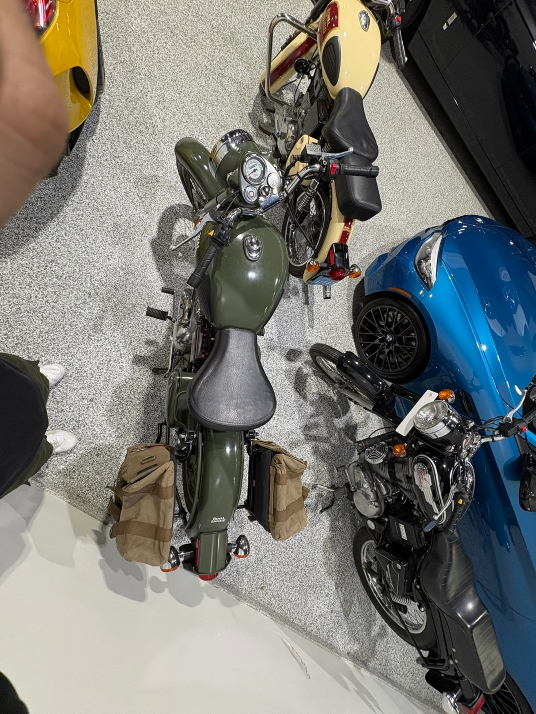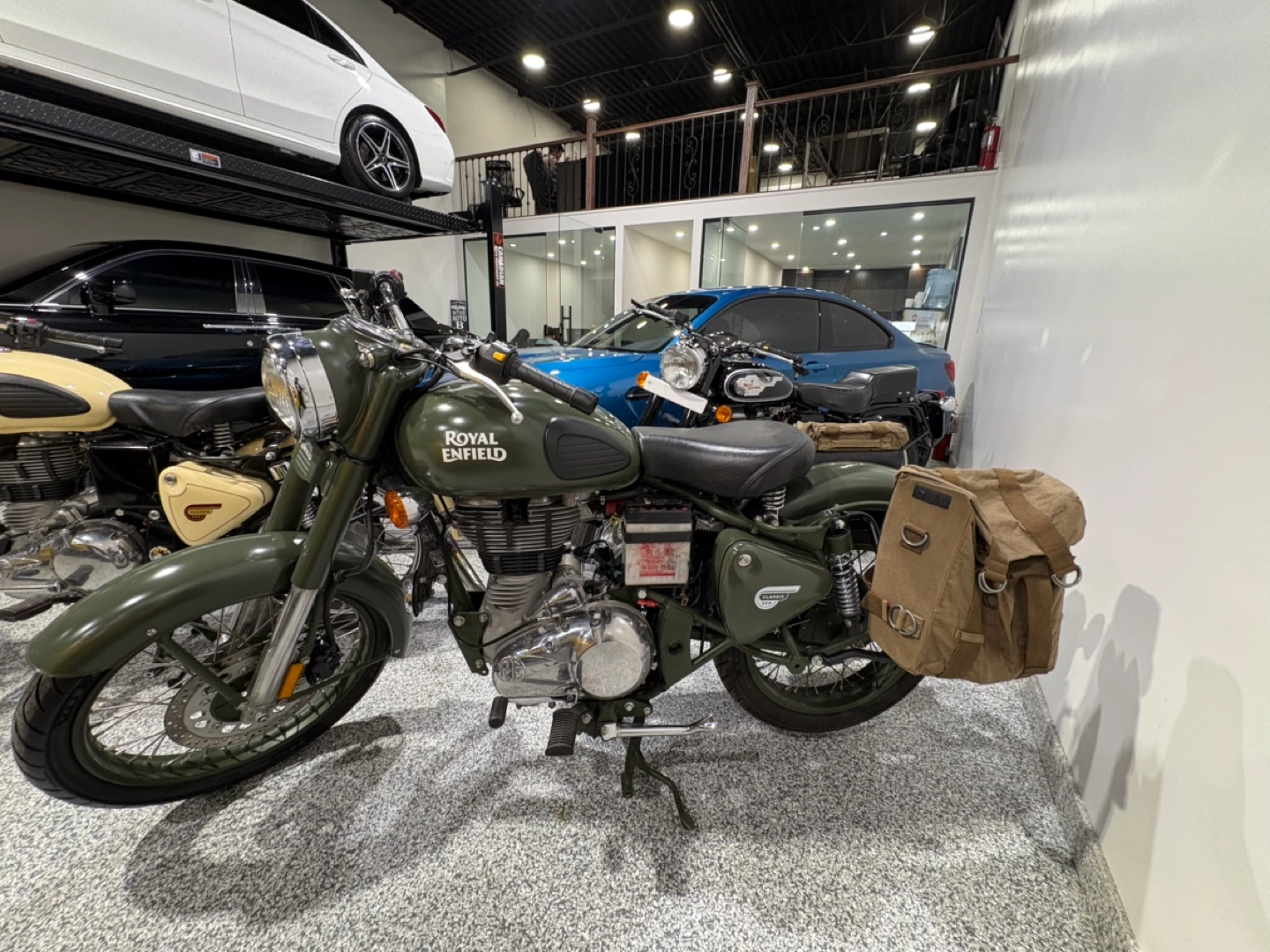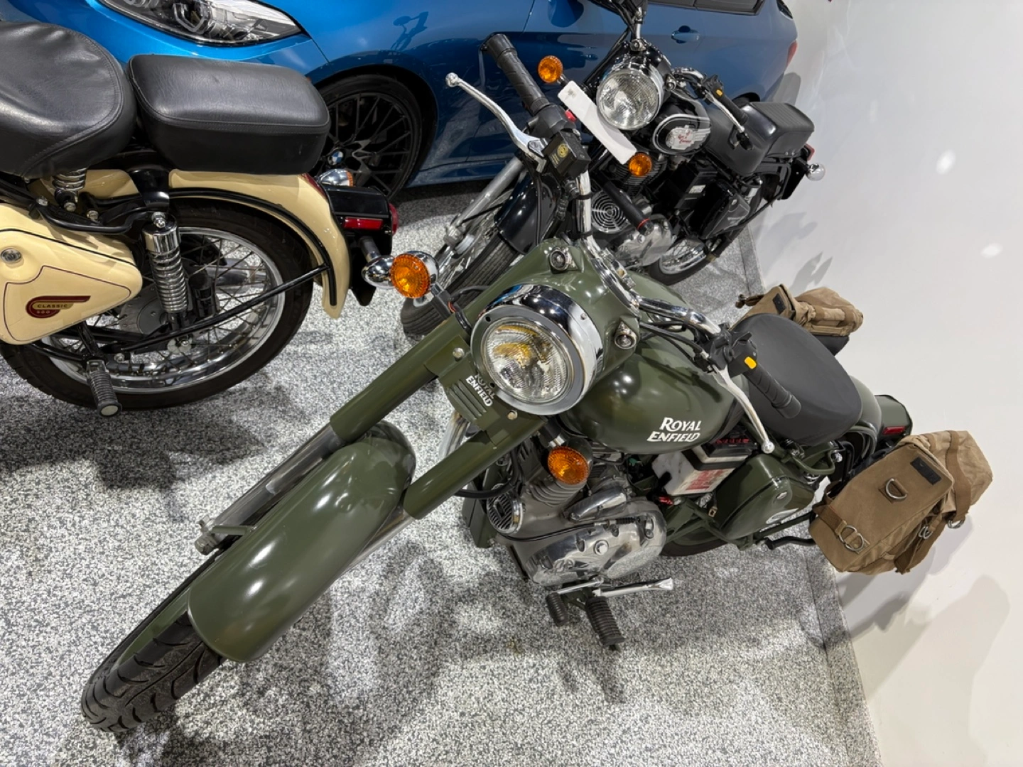 Military green motorcycle. Side panniers included. Excellent condition. Low mileage.