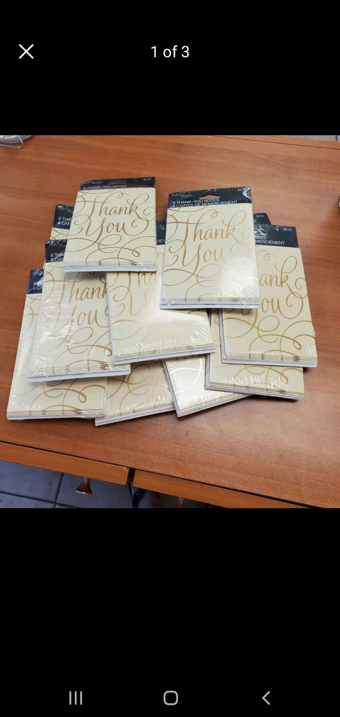 New still in packages. Thank you cards. Great for all occasions ( weddings, baptism, communion ect) I have 13 packs left. Each contain 6 cards with envelopes. They are blank inside. $10.00 for all 13 packs.