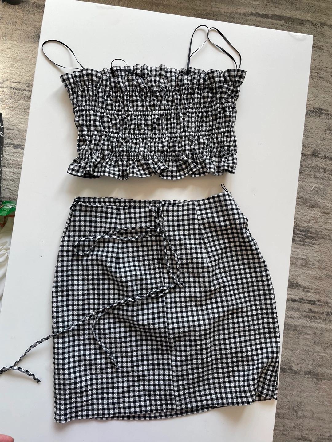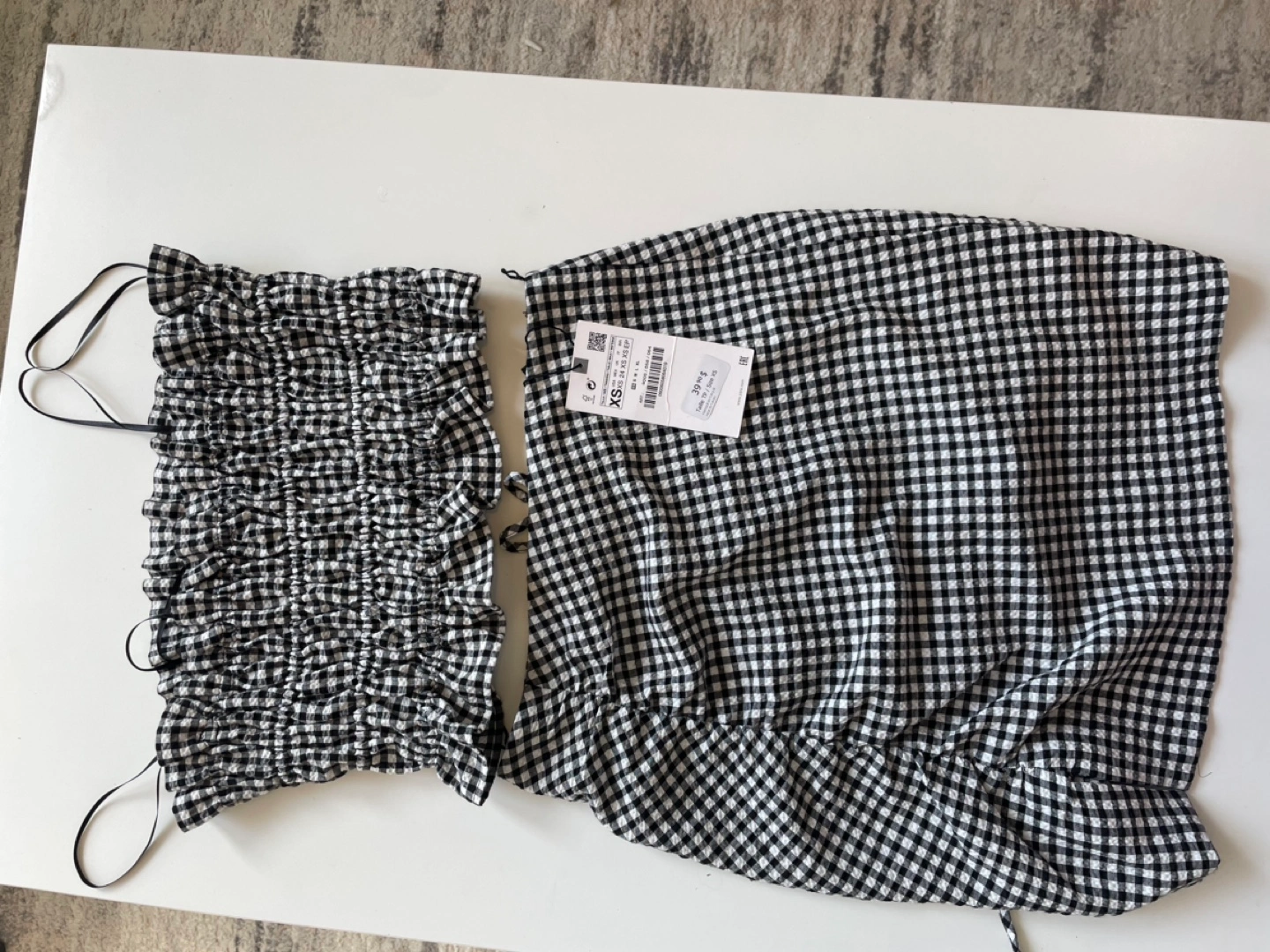 Adorable two-piece set. XS size. Features a gingham print crop top and mini skirt. Both pieces are black and white. Pick up at Dufferin and st Clair See my other listings for a bundle price if interested in another item :) Follow my instagram page: relove.ca