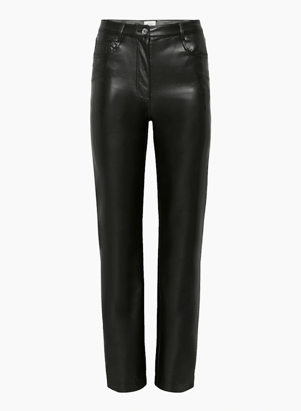 High-waisted leather look trousers. Straight leg fit. Classic black colour. Perfect for a night out or dressed down. Size 2 Aritzia black Melina pants
