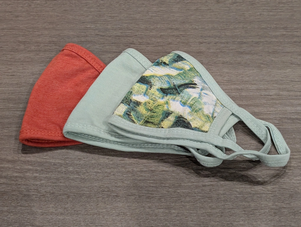 Set of three cotton face masks (coral, light teal, and tropical pattern). Machine washable. Great for everyday use! Pick-up location: Yonge-Bloor St E If you have any questions, please let me know!