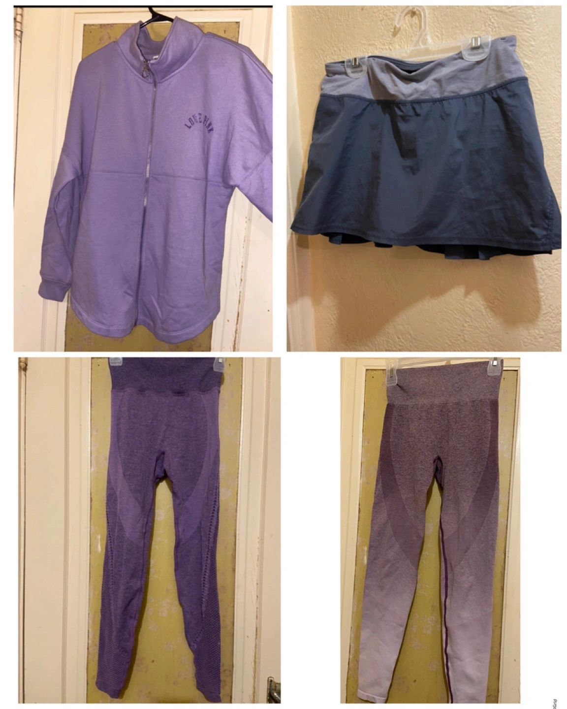 Price range from $20 or $25 A. PINK Victoria’s Secret full zip sweatshirt logo mock neck lavender purple szXS Condition- in good condition and shape. Has No rips. No wear or tear Size- xsmall (oversized fit small/ medium) Colour- lavender purple Short collar, Has side pockets. Zip up Price- $20 cash B. PINK Active leggings szXS Condition- in good used condition. Has No rips. no stains. No wear or tear Hardly worn. Few times. Size- XSMALL Colour- Purple Brand name - Love Pink Has see though holes at the bottom Price- $25 cash C. Lululemon grey tennis skirt szXS Description Condition- has been worn. In very good shape and condition. Has no rips, stains Colour- grey Size- 4 (xsmall) -built in spandex shorts Price- $25 D. PINK Active leggings szXS Condition- in good used condition. Has No rips. no stains. No wear or tear Hardly worn. Few times. Size- XSMALL Colour- Purple Brand name - Love Pink PINK Active leggings szXS Get ready to rock your workout with these PINK Victoria’s Secret leggings, perfect for any fitness enthusiast! These leggings, in size XS, feature a stylish purple ombre design that will make you stand out. Gently worn, they’re still in great shape for your next gym session or casual outing. * Brand: PINK Victoria’s Secret * Colour: Purple Ombre * Material: Blend (see tag image for details) Condition- in good used condition. Has No rips. no stains. No wear or tear Hardly worn. Few times. Size- XSMALL Colour- Purple Brand name - Love Pink Price- $25 Cash Payment Only No Refunds / Exchange No try ons, No trading, No holds. All purchases are Finally Sale From a Smoke Free home Fast pick up Confirmed Price-$25 for each Pick up- Only at TTC Station- Coxwell subway station Located In East York, Toronto Drop off available- Only Within East York area for Extra fee cost. Depends on the distance. Just ask for my info