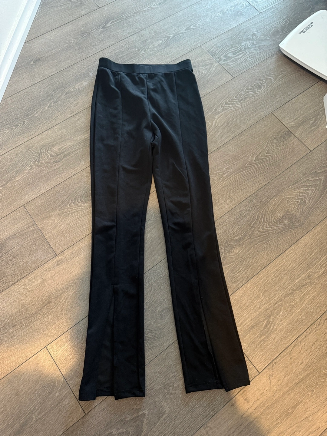 Women's black pants. Features a high waist and side splits. Looks great with a casual top or tucked-in blouse. Buy three items from my listings and get one under 10 for free! Multiple purchases come with decent discounts!
