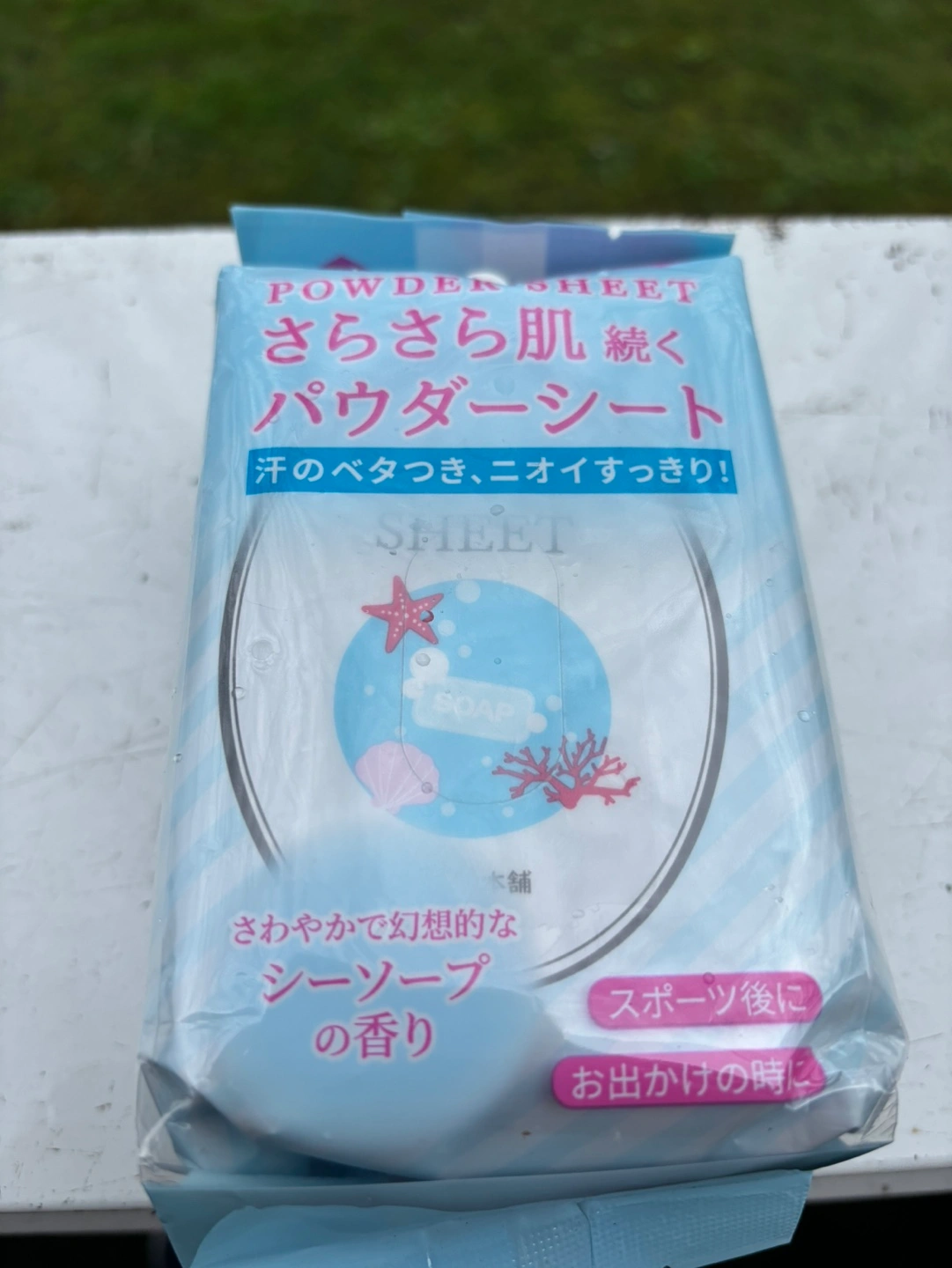 New, unopened package. 50 sheets. Sea soap scent. Powder sheets for a refreshing feel. Perfect for after sports or going out. Pick it up near Richmond Centre