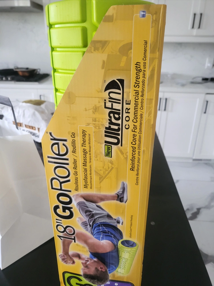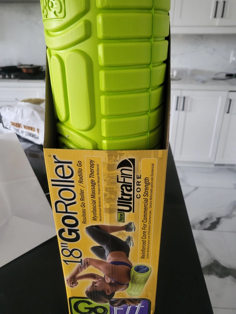 Brand new, lime green foam roller. Great for myofascial massage therapy. Reinforced core for commercial strength. 18 inches long.